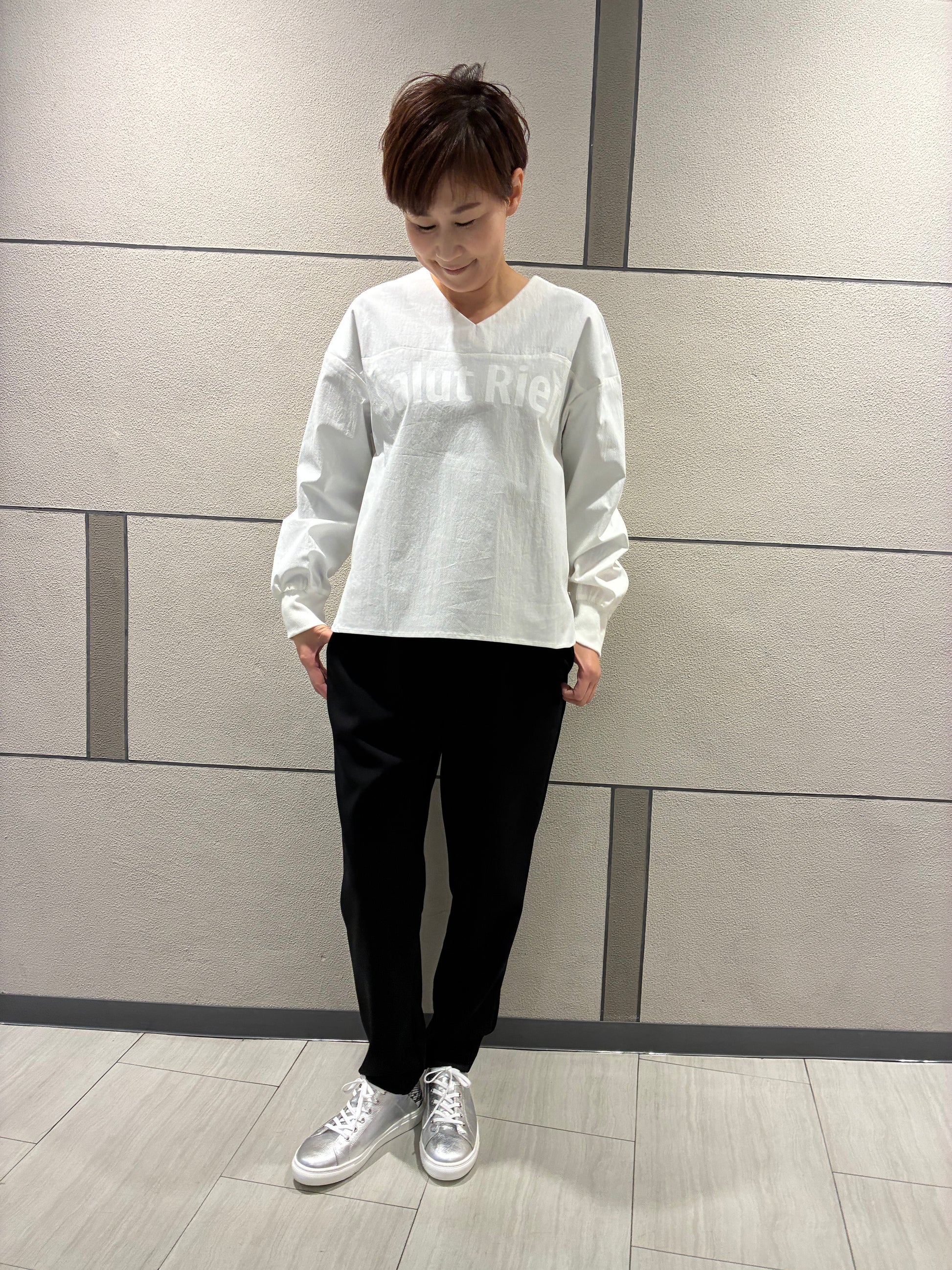 程よくゆとりのあるトップスと、