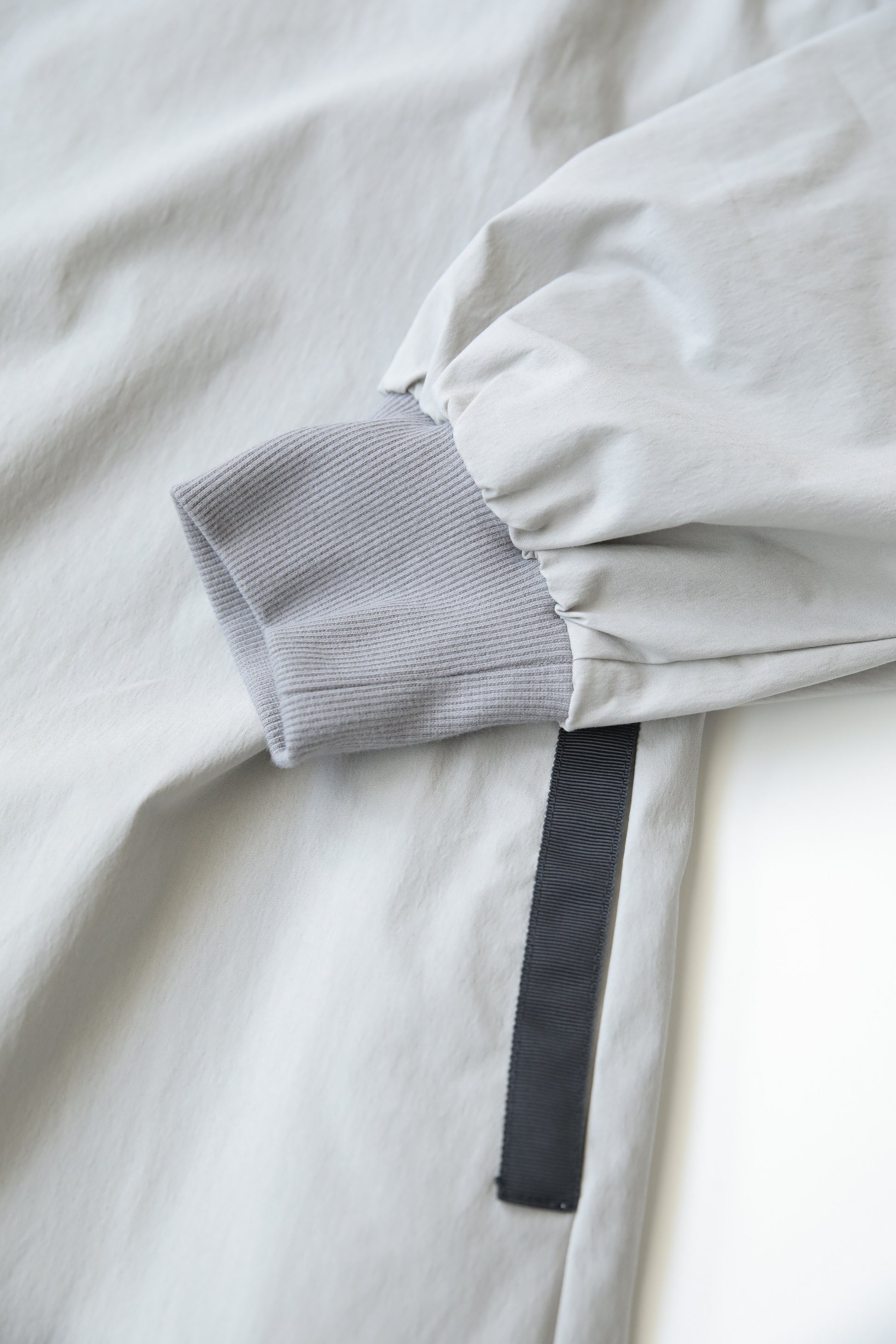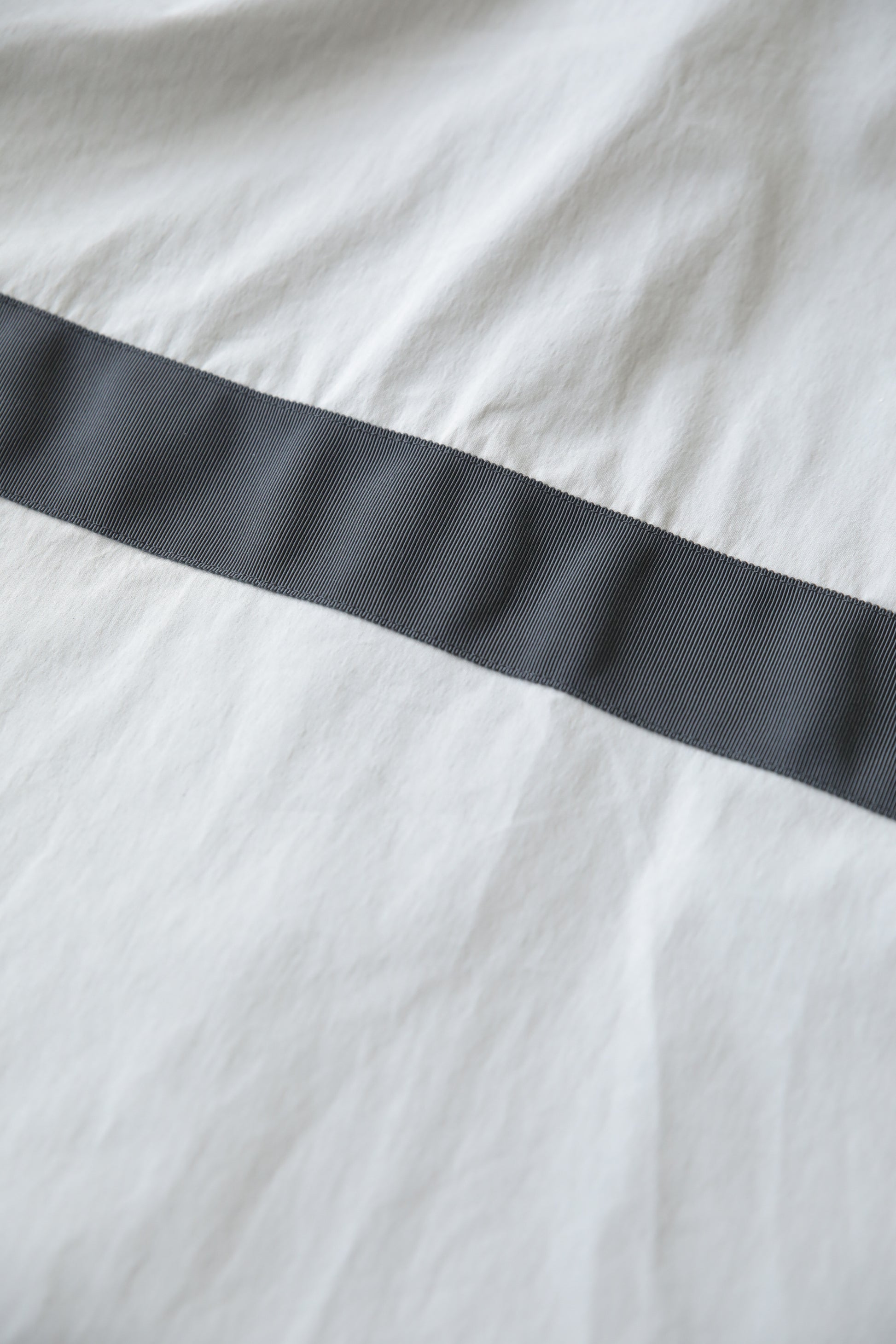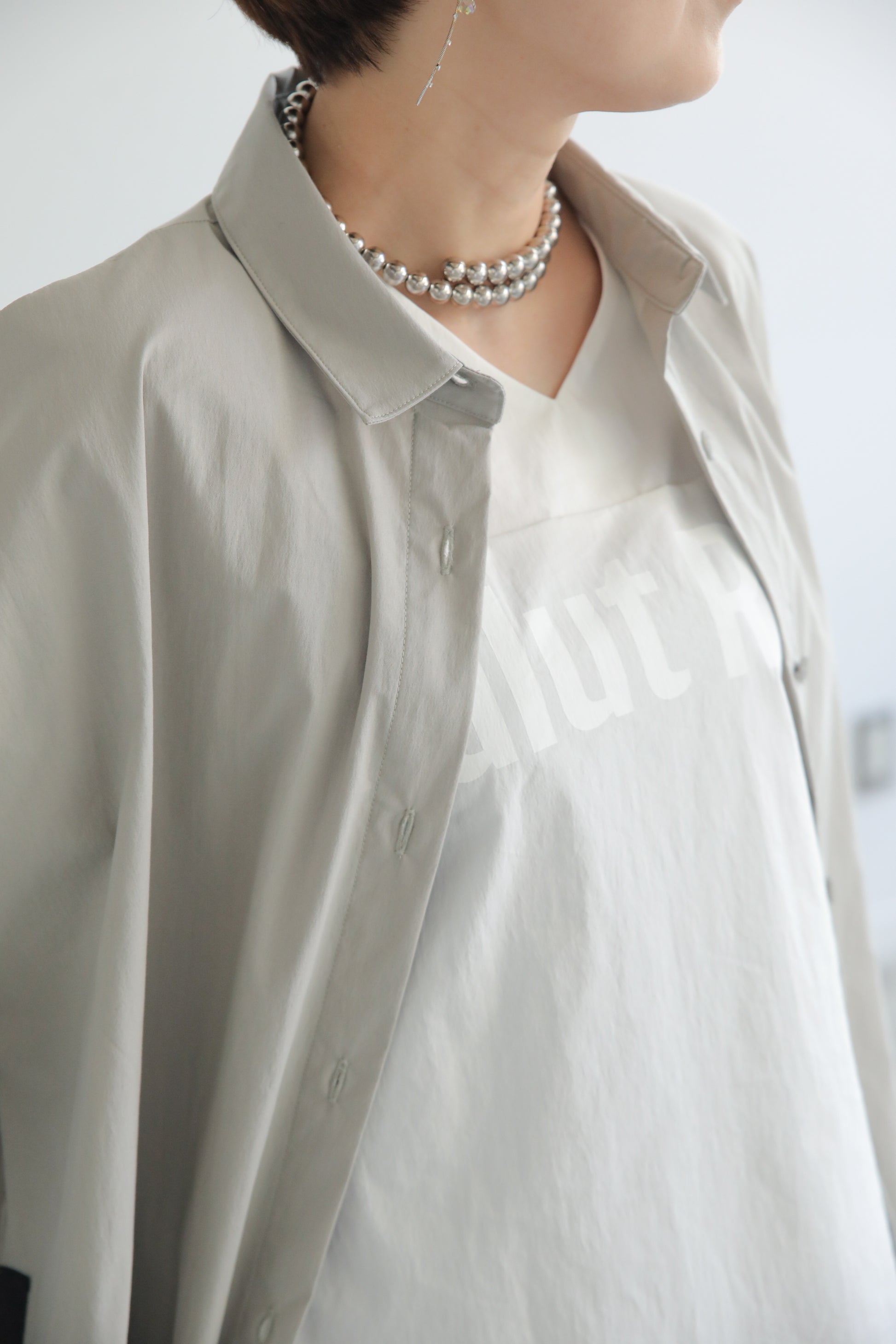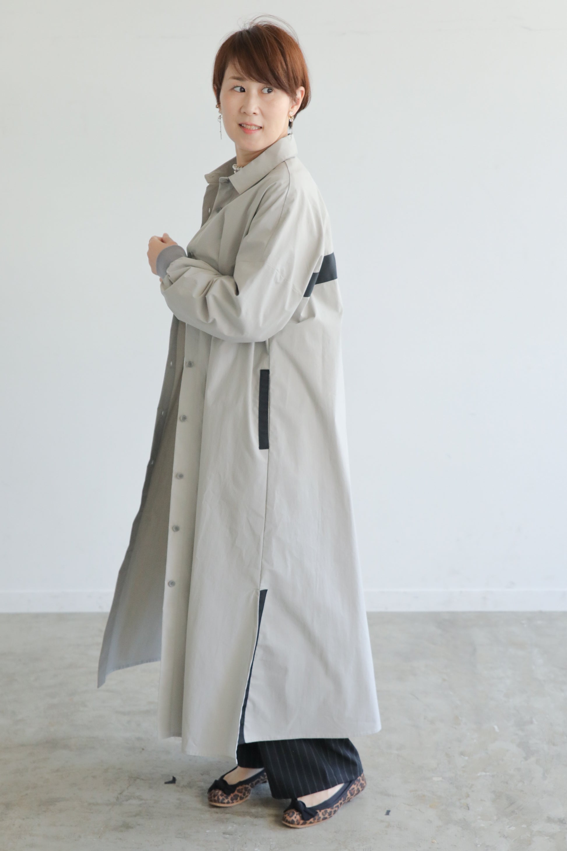 ハリのあるシャツ地に、背中のワンラインが映えるロング丈のシャツ羽織。前を開けて“羽織り”、閉じて“シャツワンピ”—2WAYでオンオフを横断。クリーンなきれいめ感に、スポーティなアクセントをひとさじ添えた主役級の一枚です。