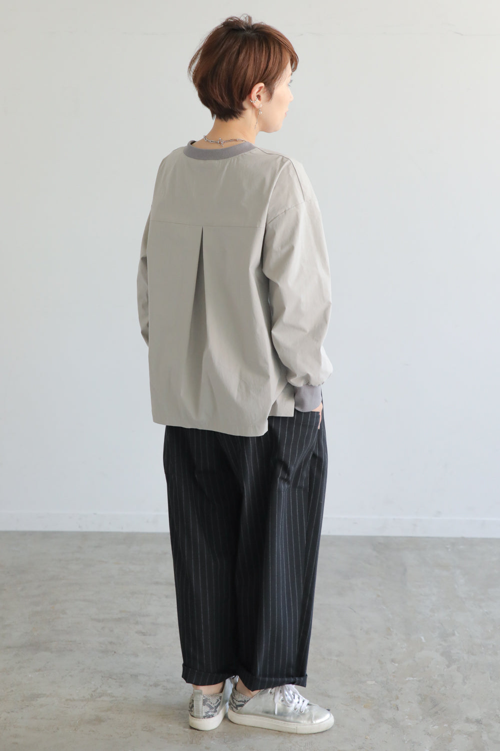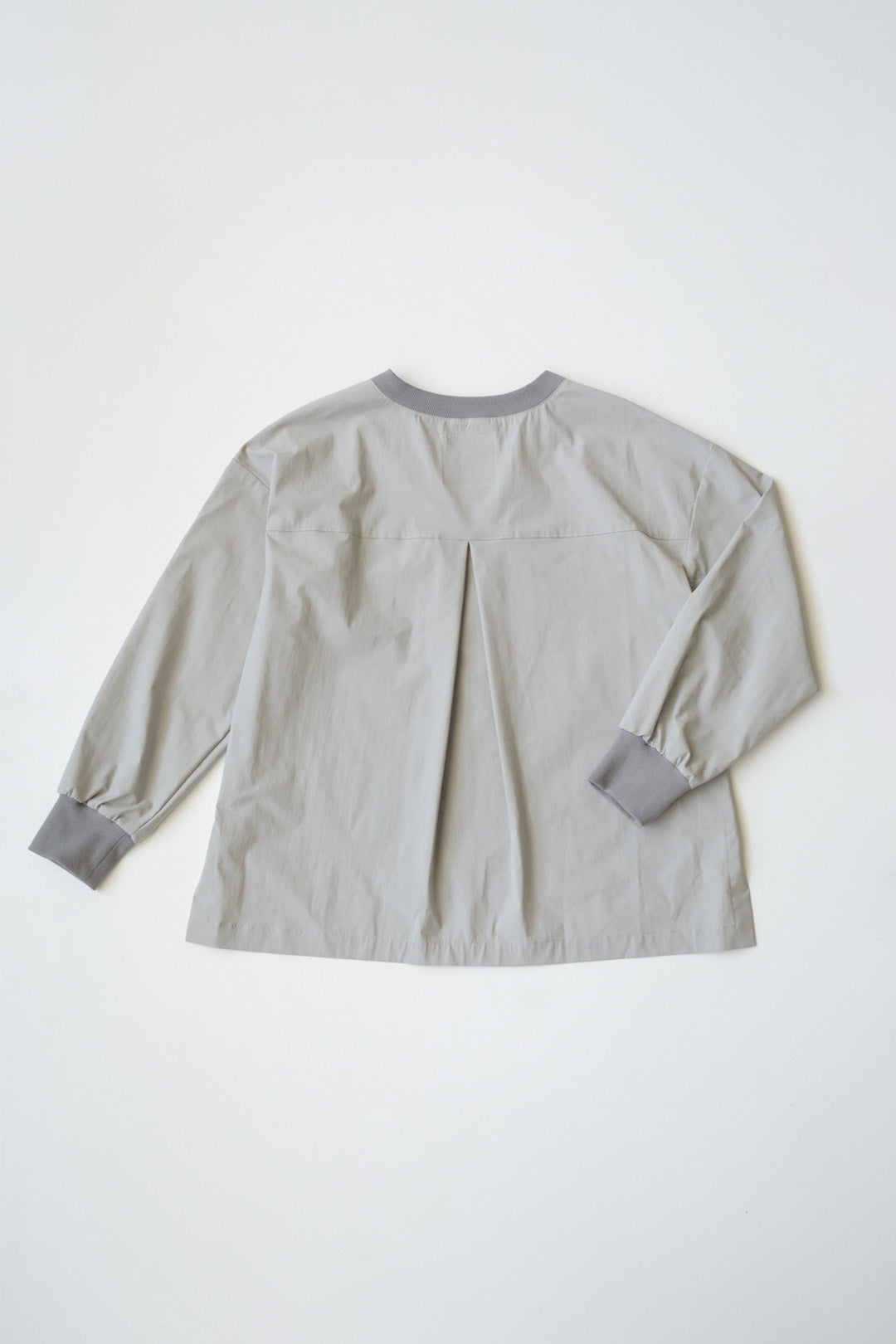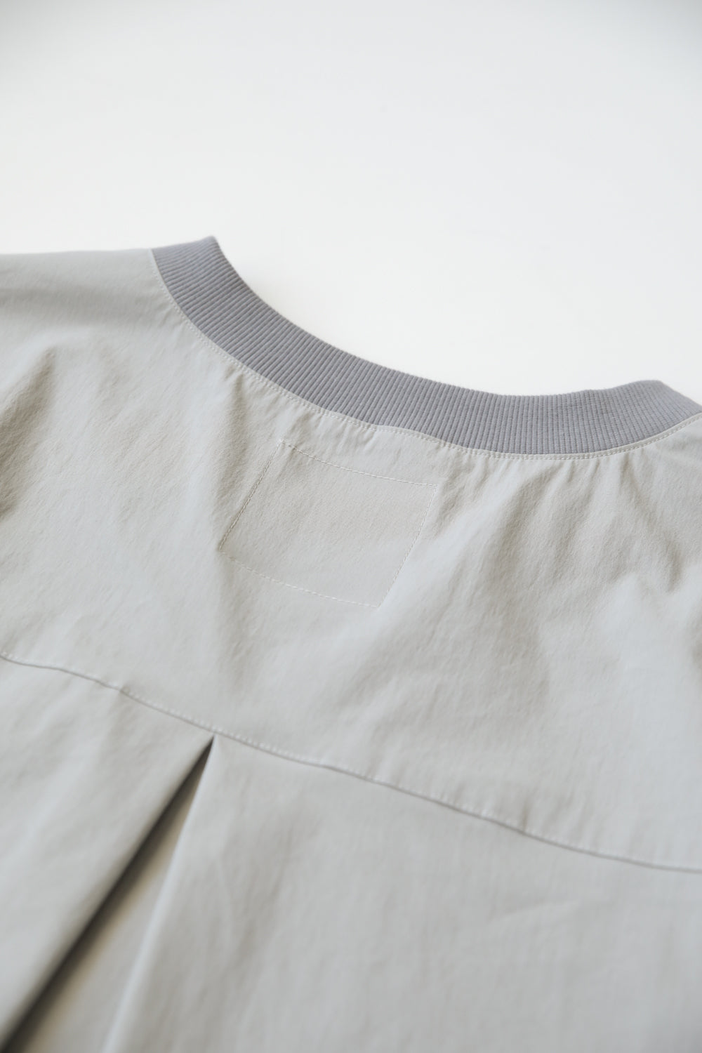 シャツ地のハリ感×控えめロゴで“大人カジュアル”がきちんと決まるプルオーバー。コットンナイロンのさらりとしたタッチにストレッチをひとさじ、動きやすさも◎。前後差ヘムと浅めVネックで顔まわり・体のラインをすっきり見せます。
