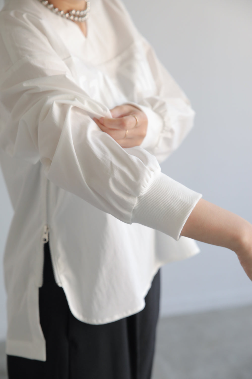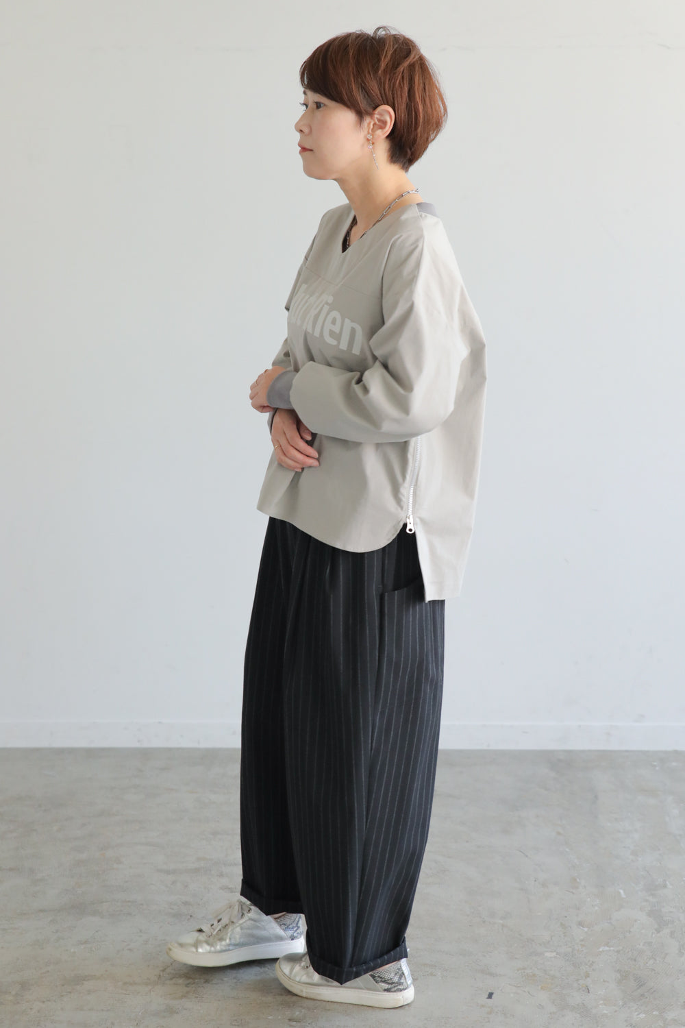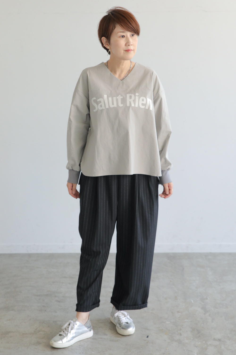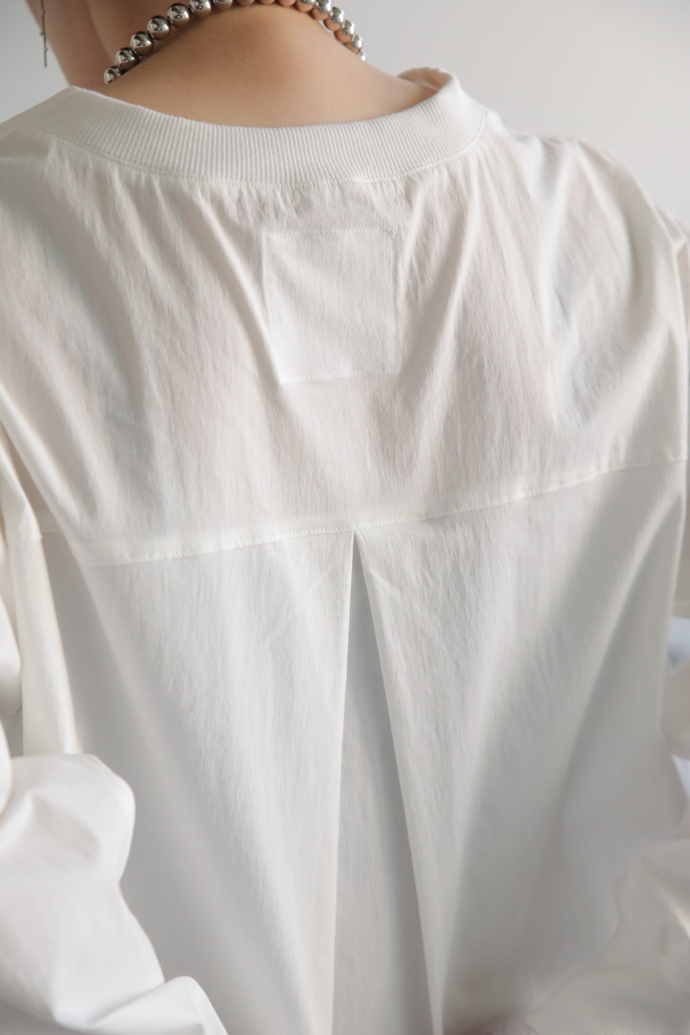 シャツ地のハリ感×控えめロゴで“大人カジュアル”がきちんと決まるプルオーバー。コットンナイロンのさらりとしたタッチにストレッチをひとさじ、動きやすさも◎。前後差ヘムと浅めVネックで顔まわり・体のラインをすっきり見せます。