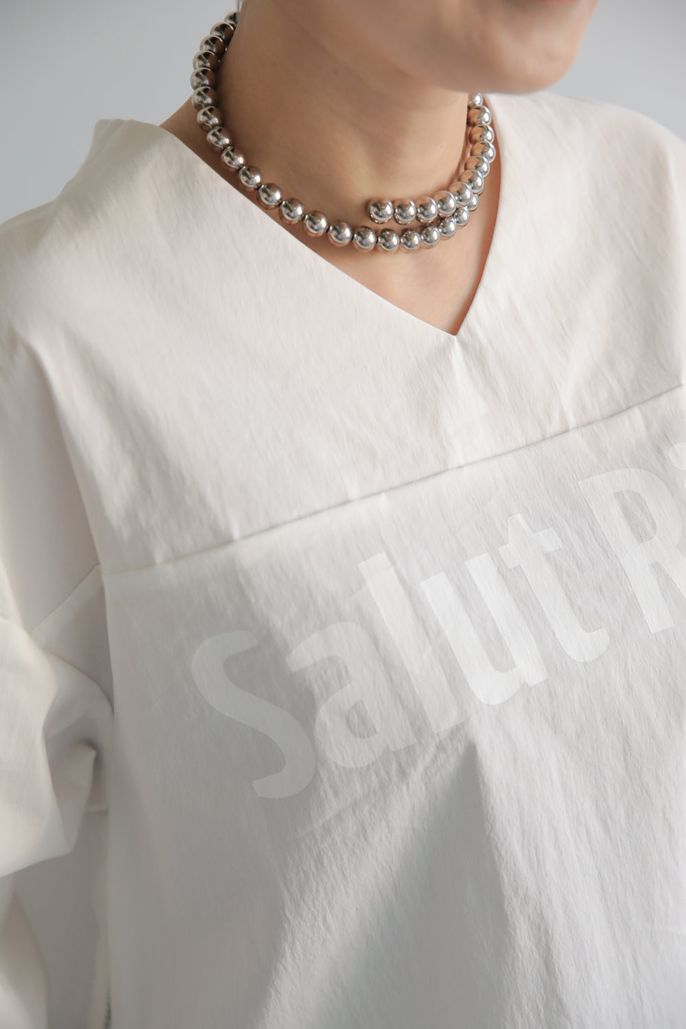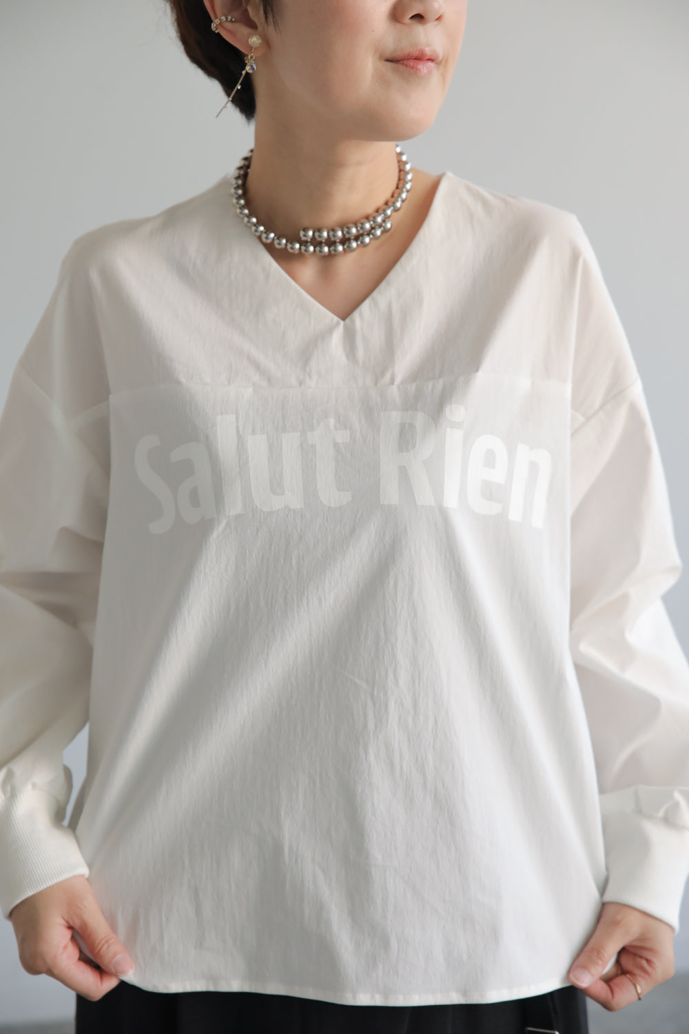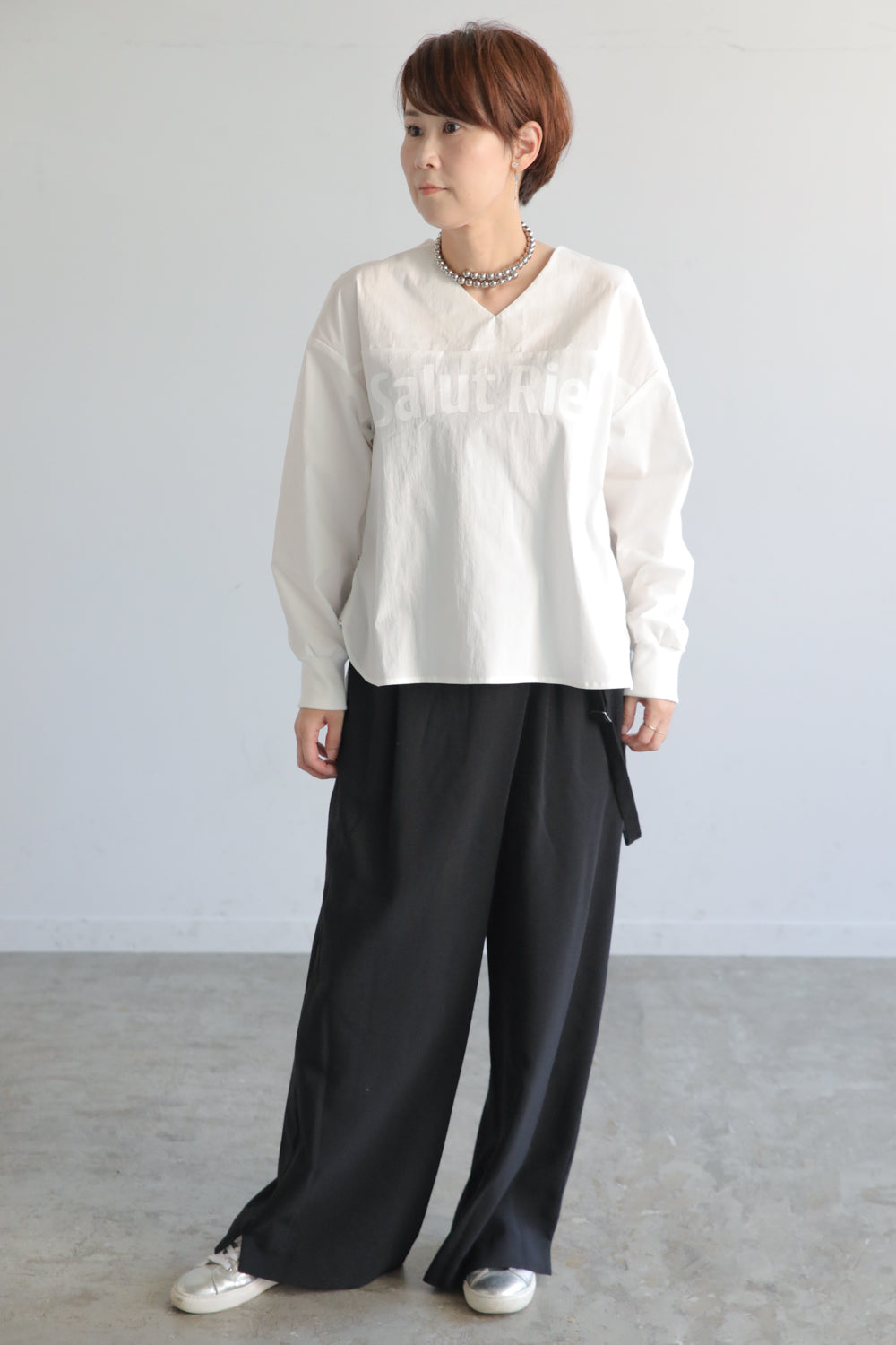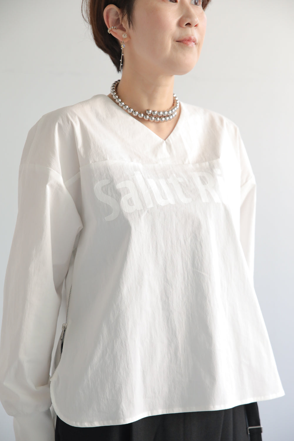 カットソーよりも上品なシャツ地に、同色系ロゴでさりげない主張。カジュアル過ぎず、ジャケットINやきれいめボトムとも好相性。