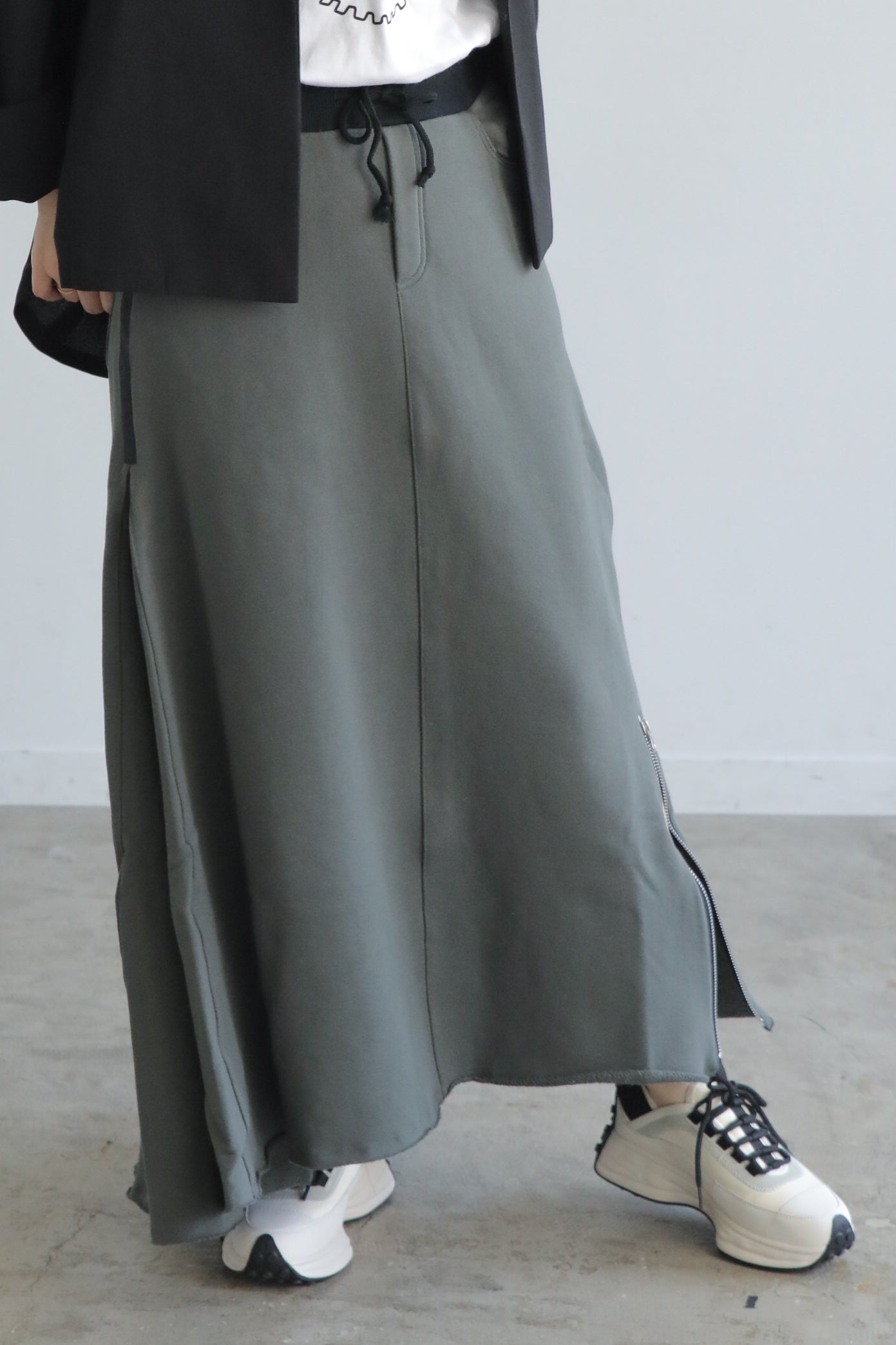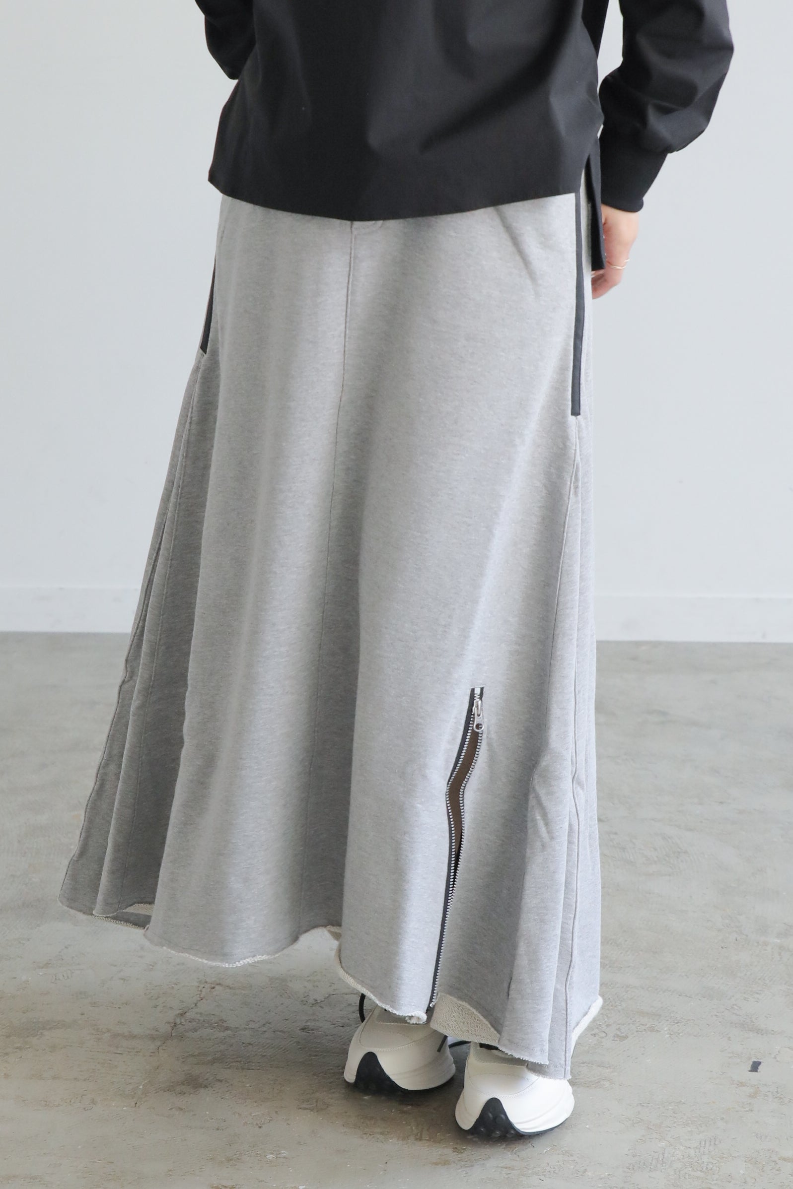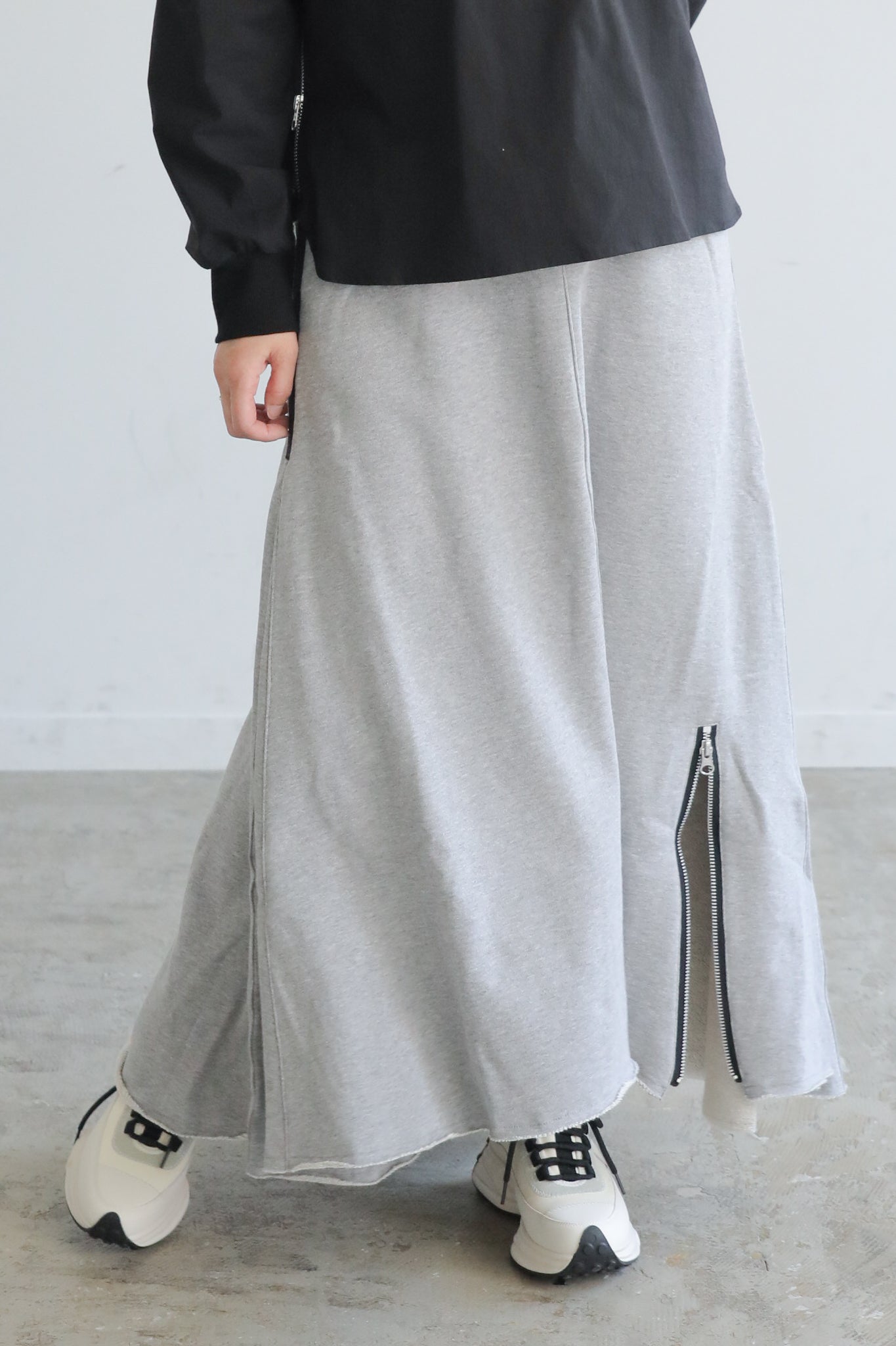 裾のファスナーとサイドラインがアクセントの、きれいめ見えするスウェットスカート。