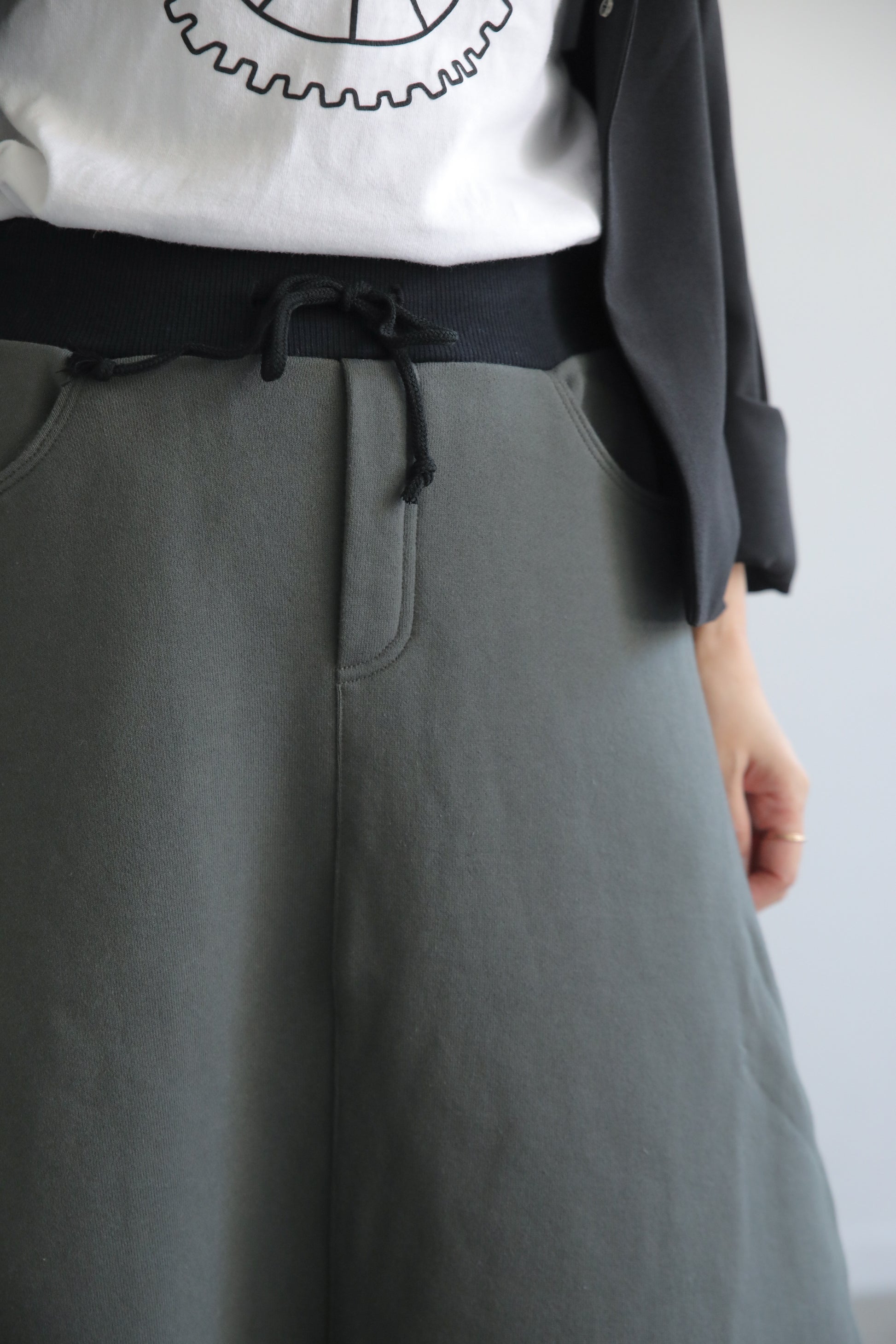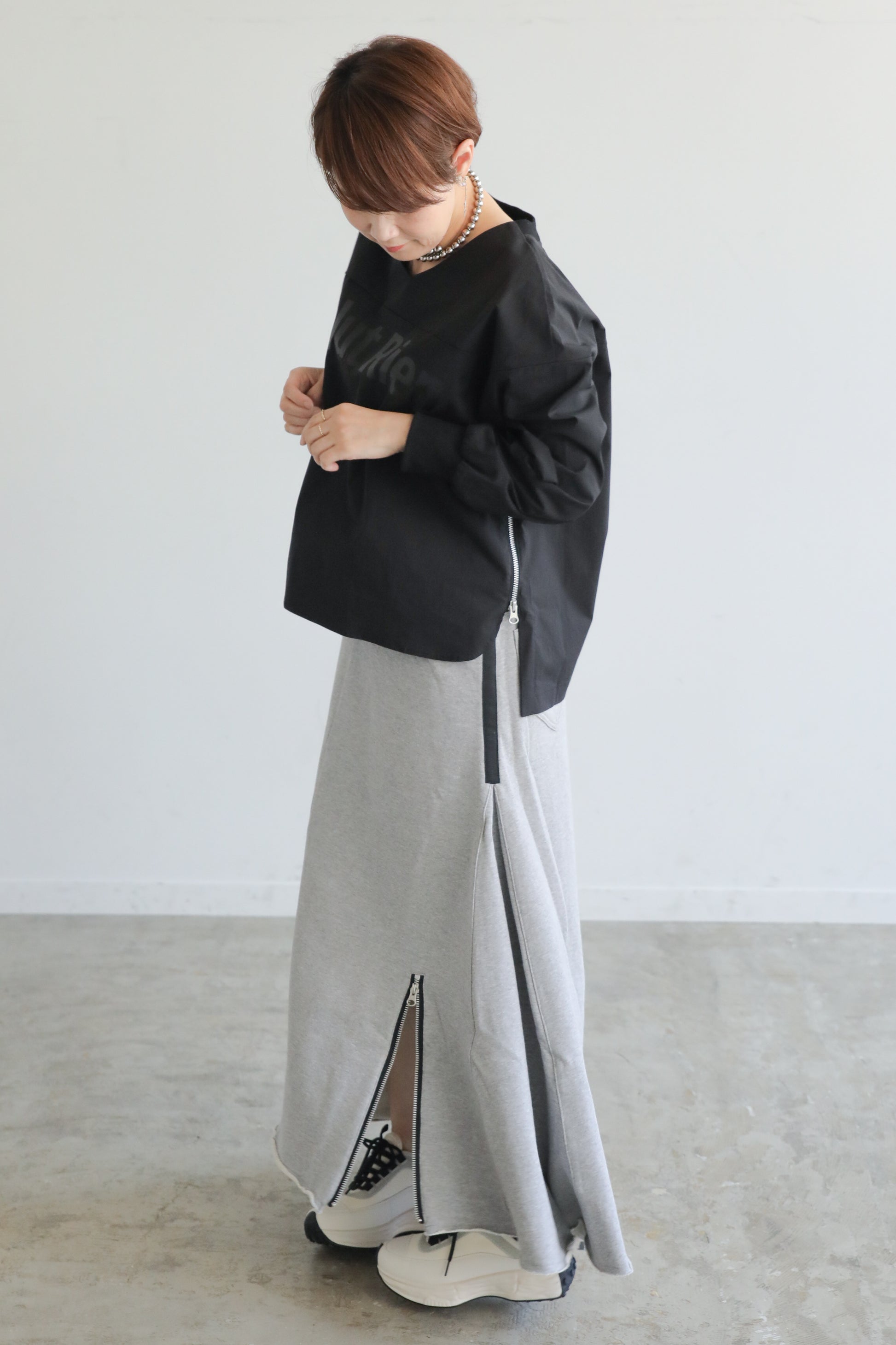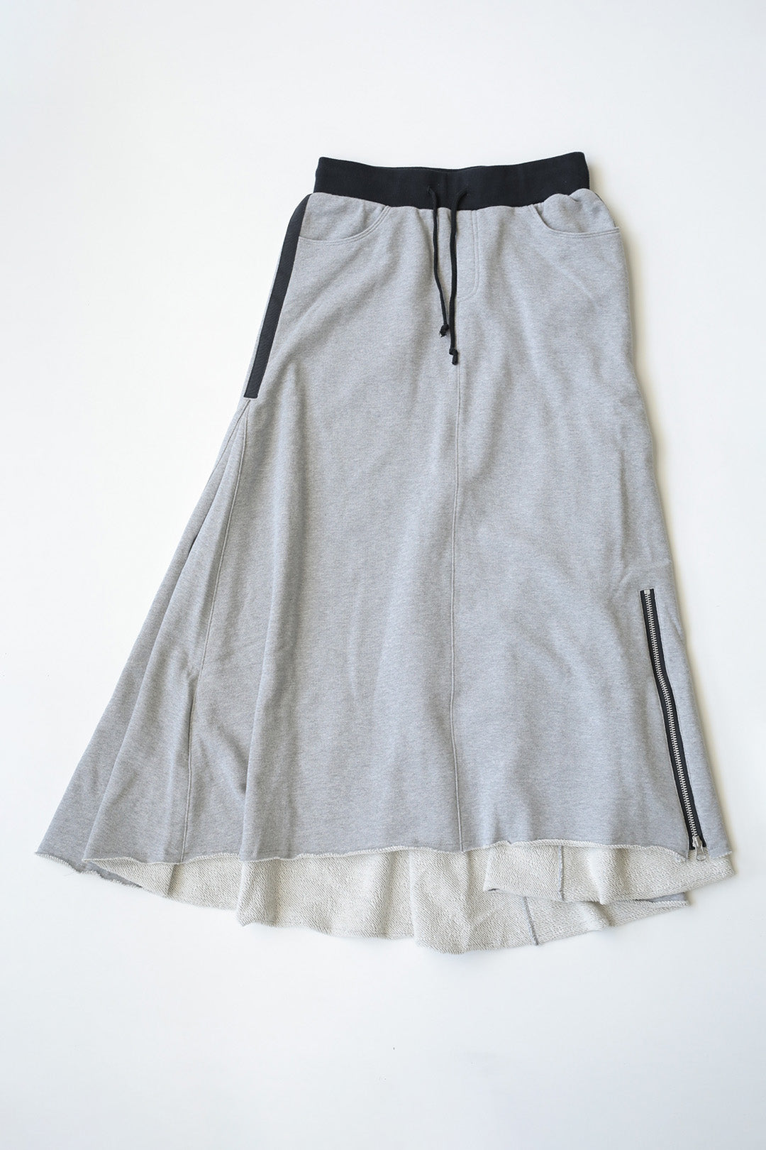 裾のファスナーとサイドラインがアクセントの、きれいめ見えするスウェットスカート。