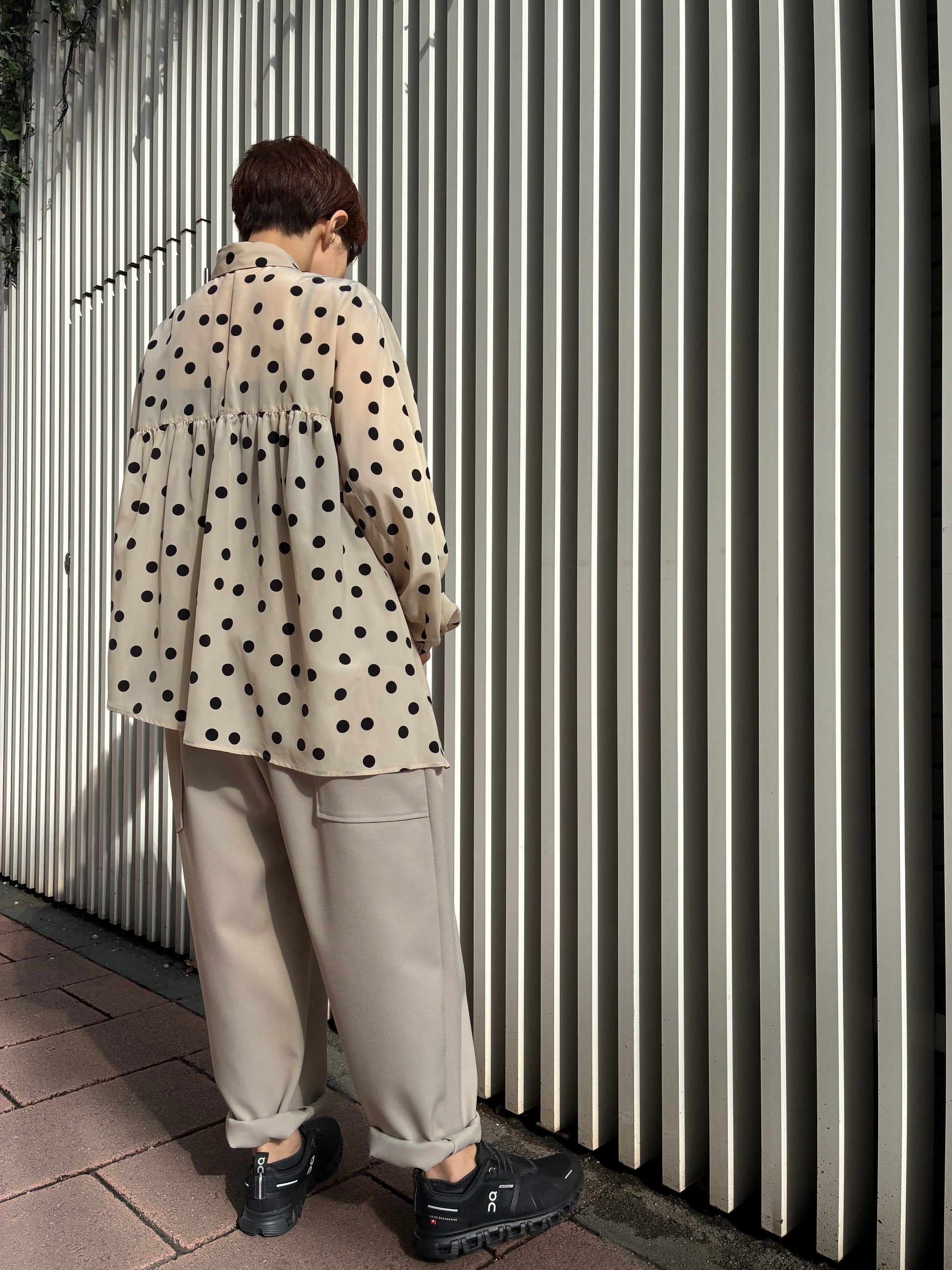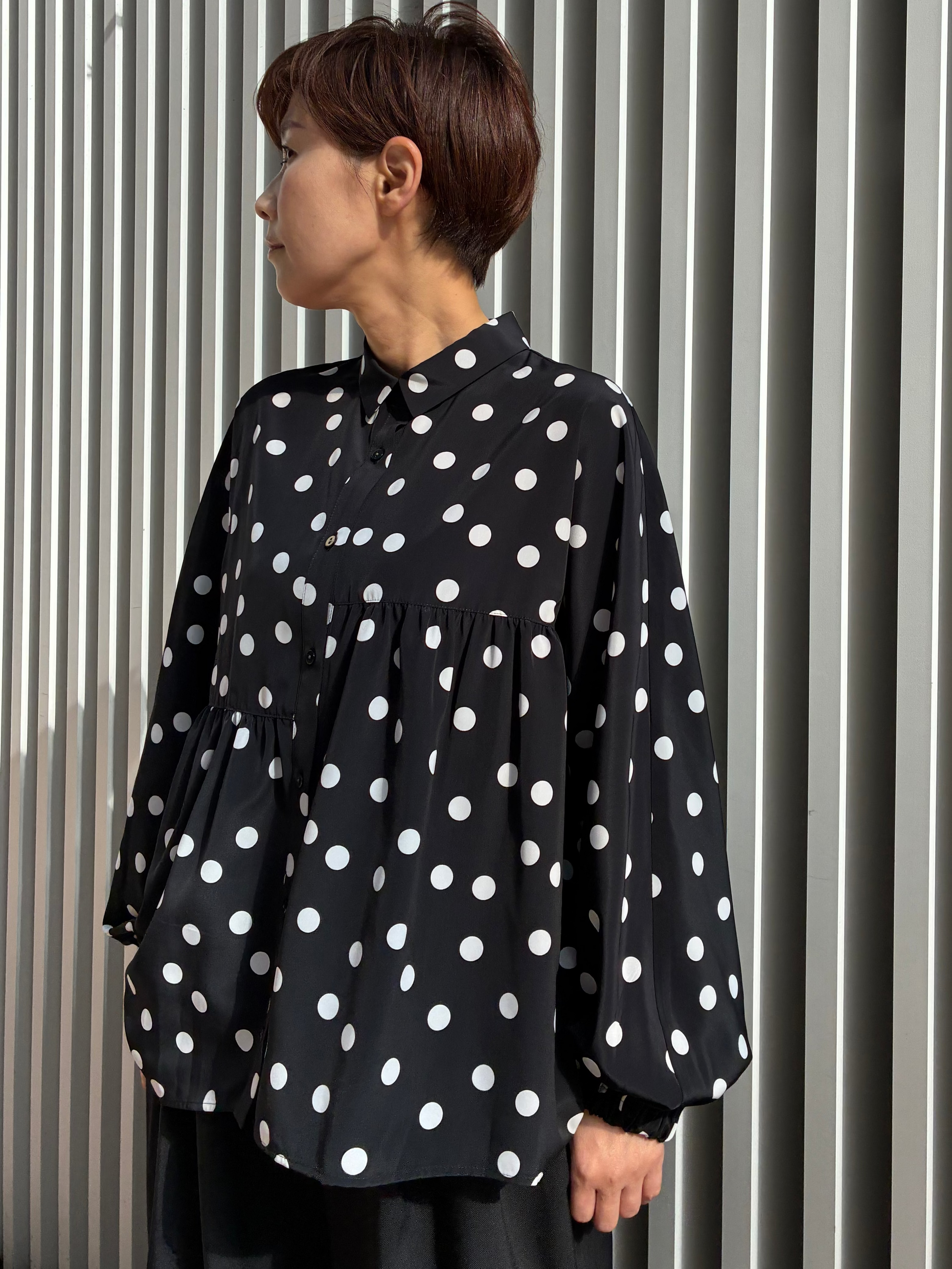 袖口はゴム仕様で、さりげないボリュームと着心地の良さを両立。