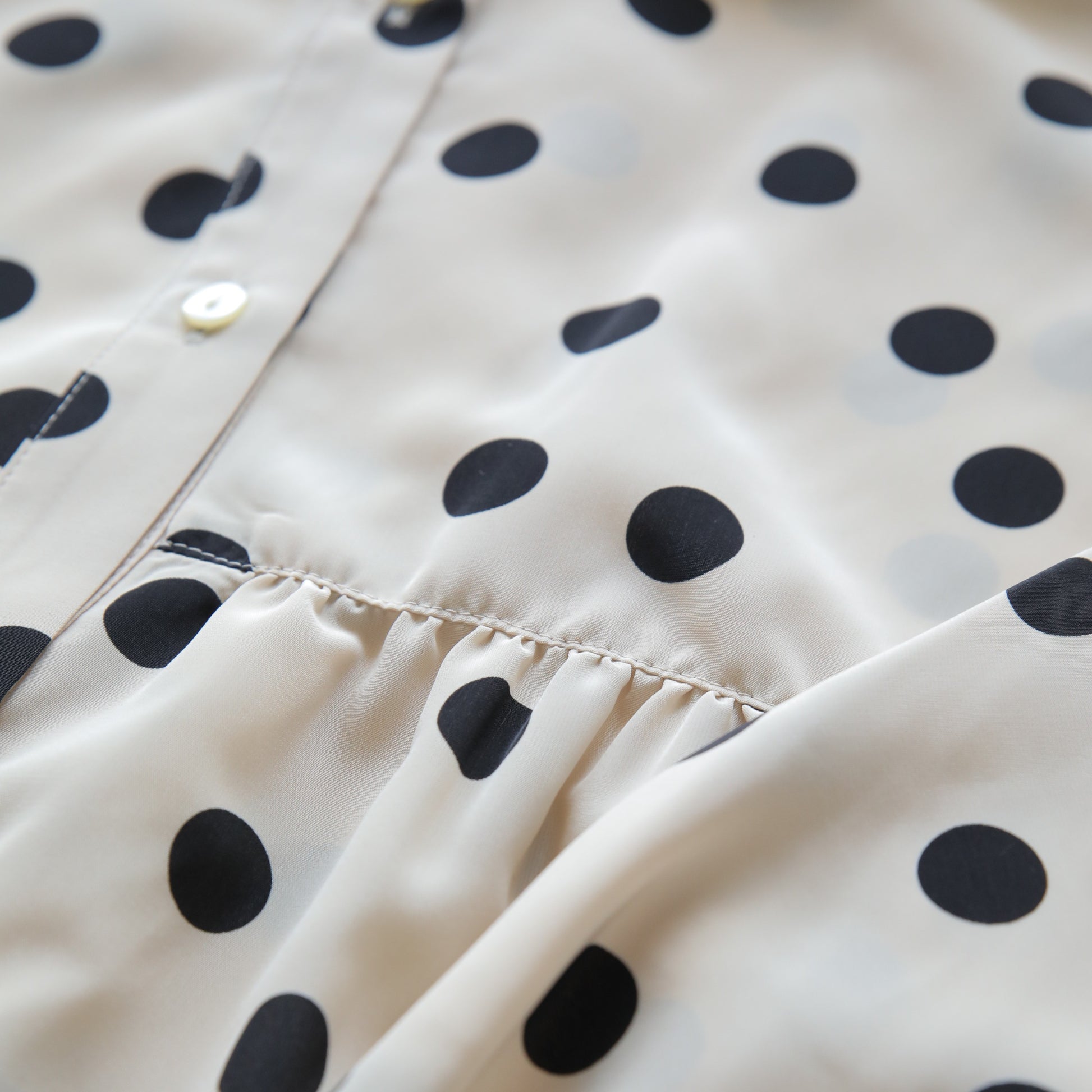 胸元のギャザーがふんわりと立体感を演出。