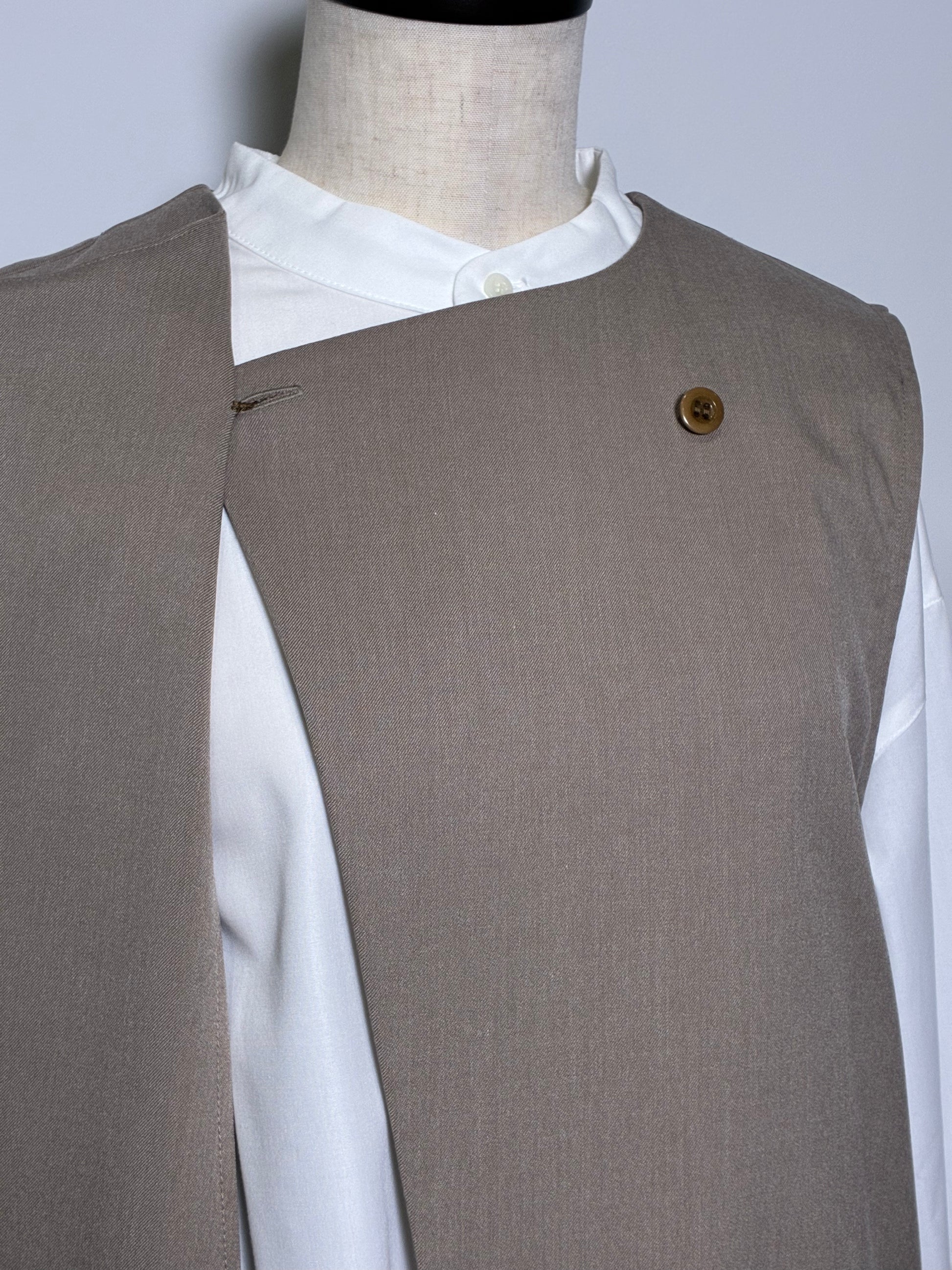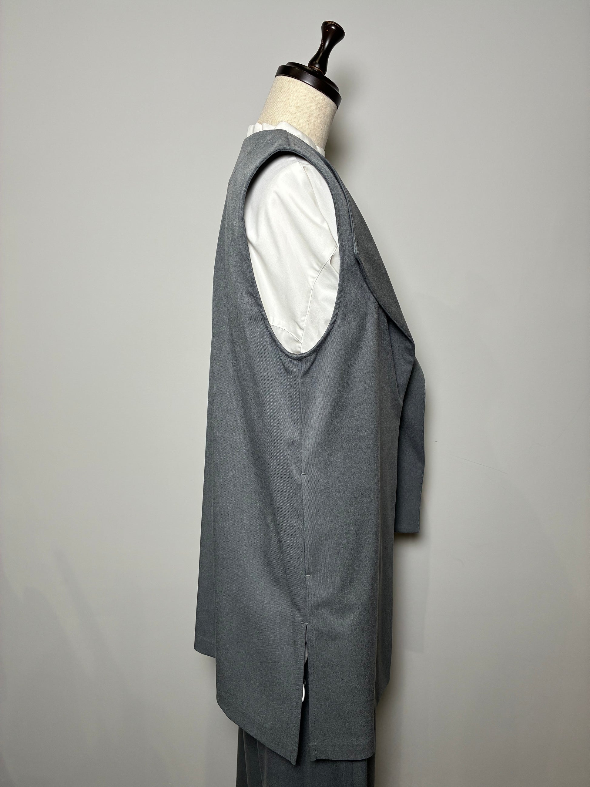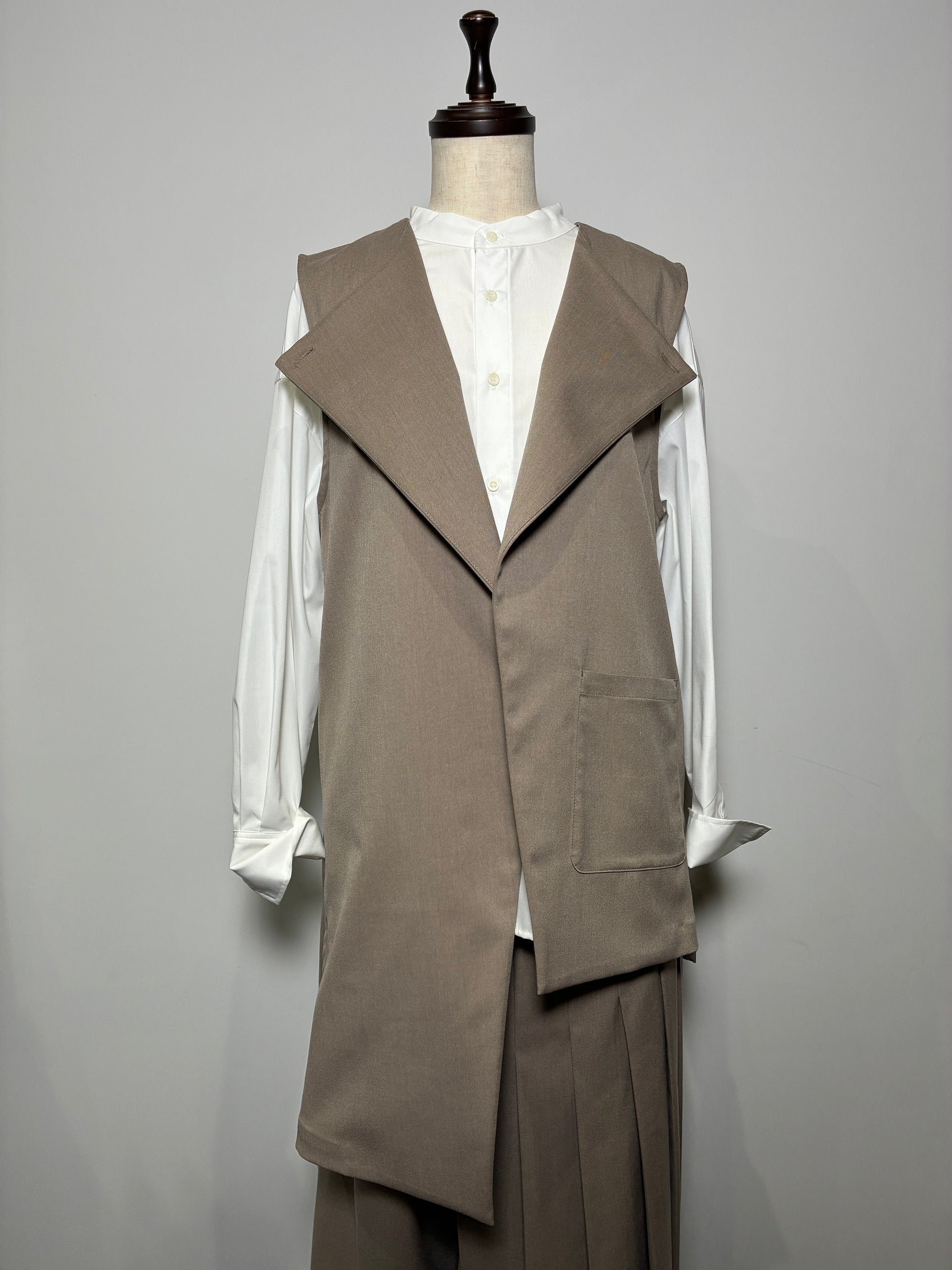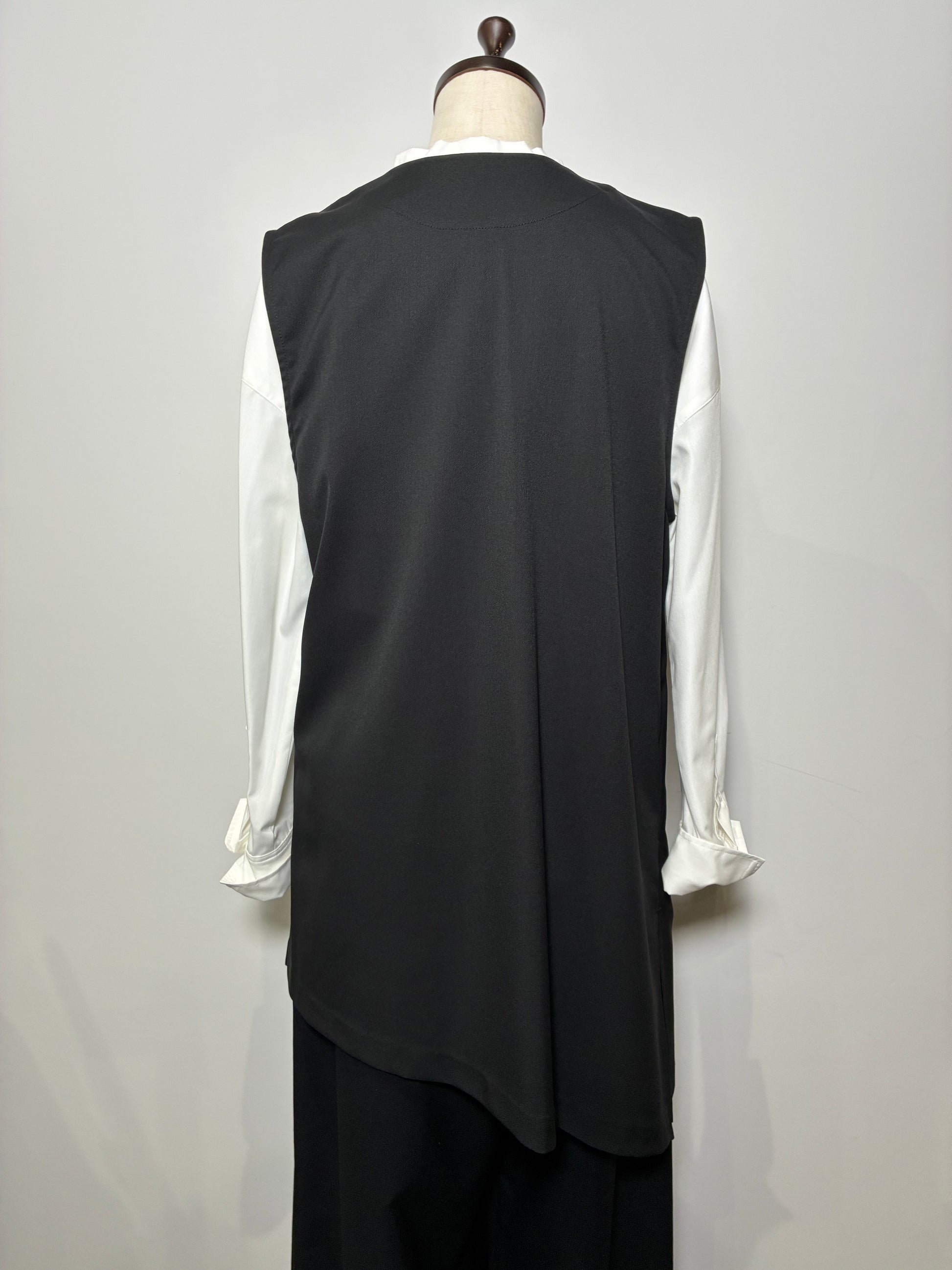 上品さの中に個性が光る、アシンメトリーデザインのジレ。