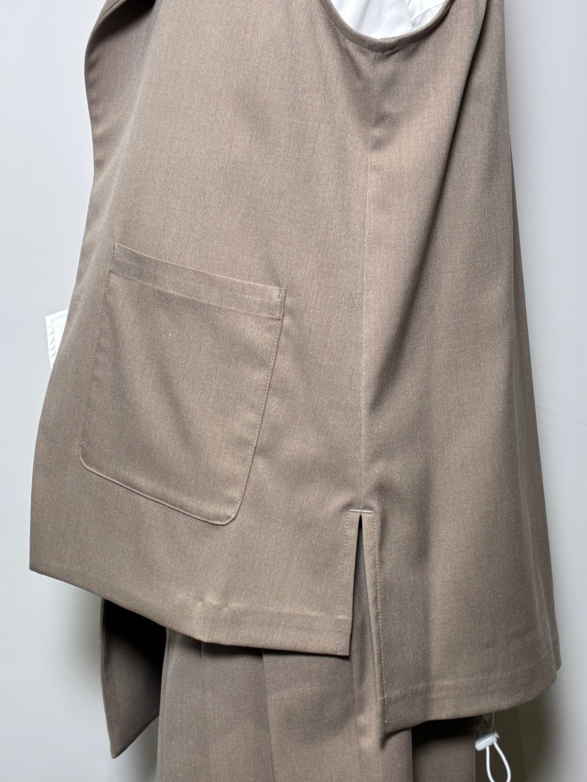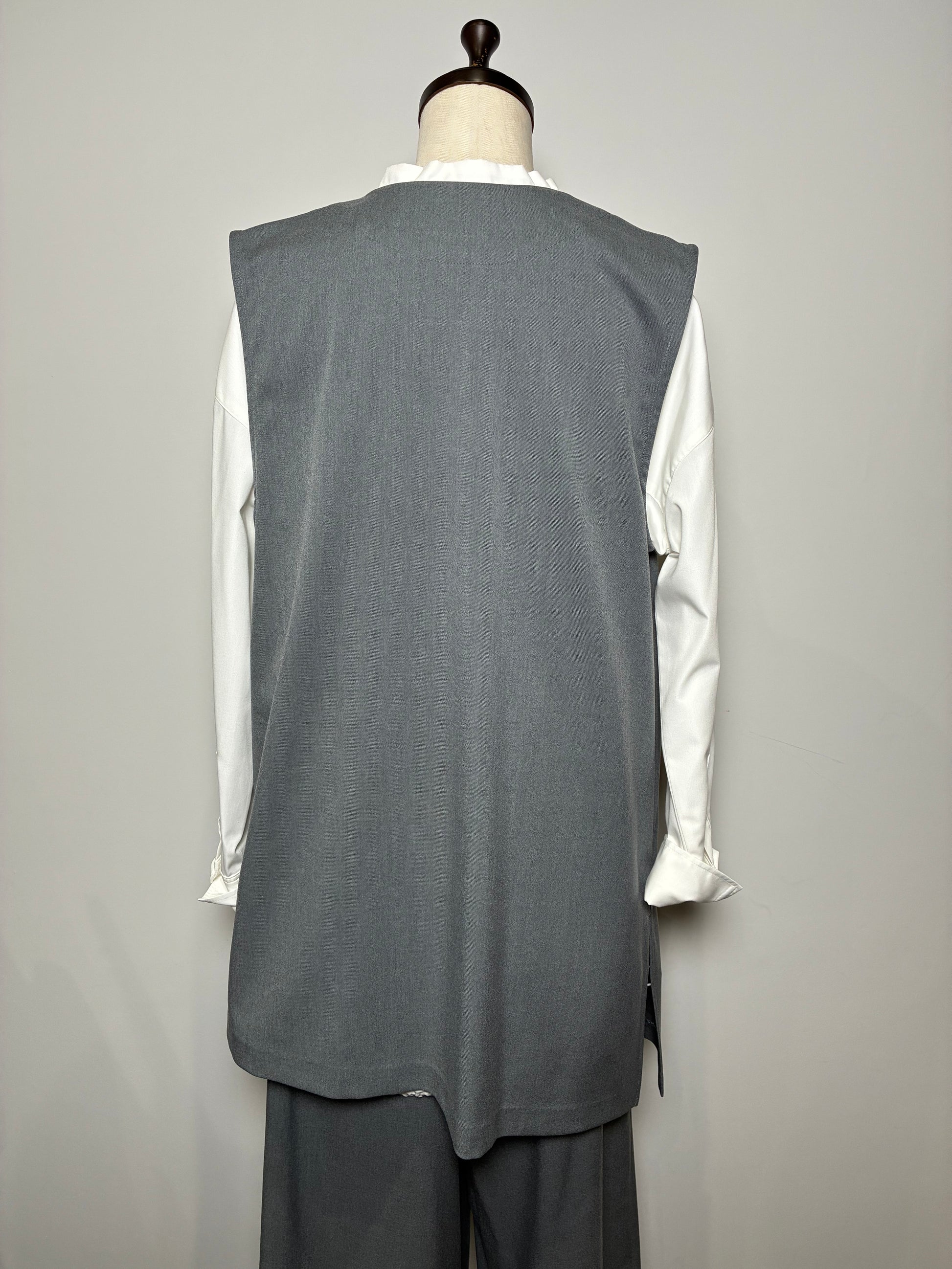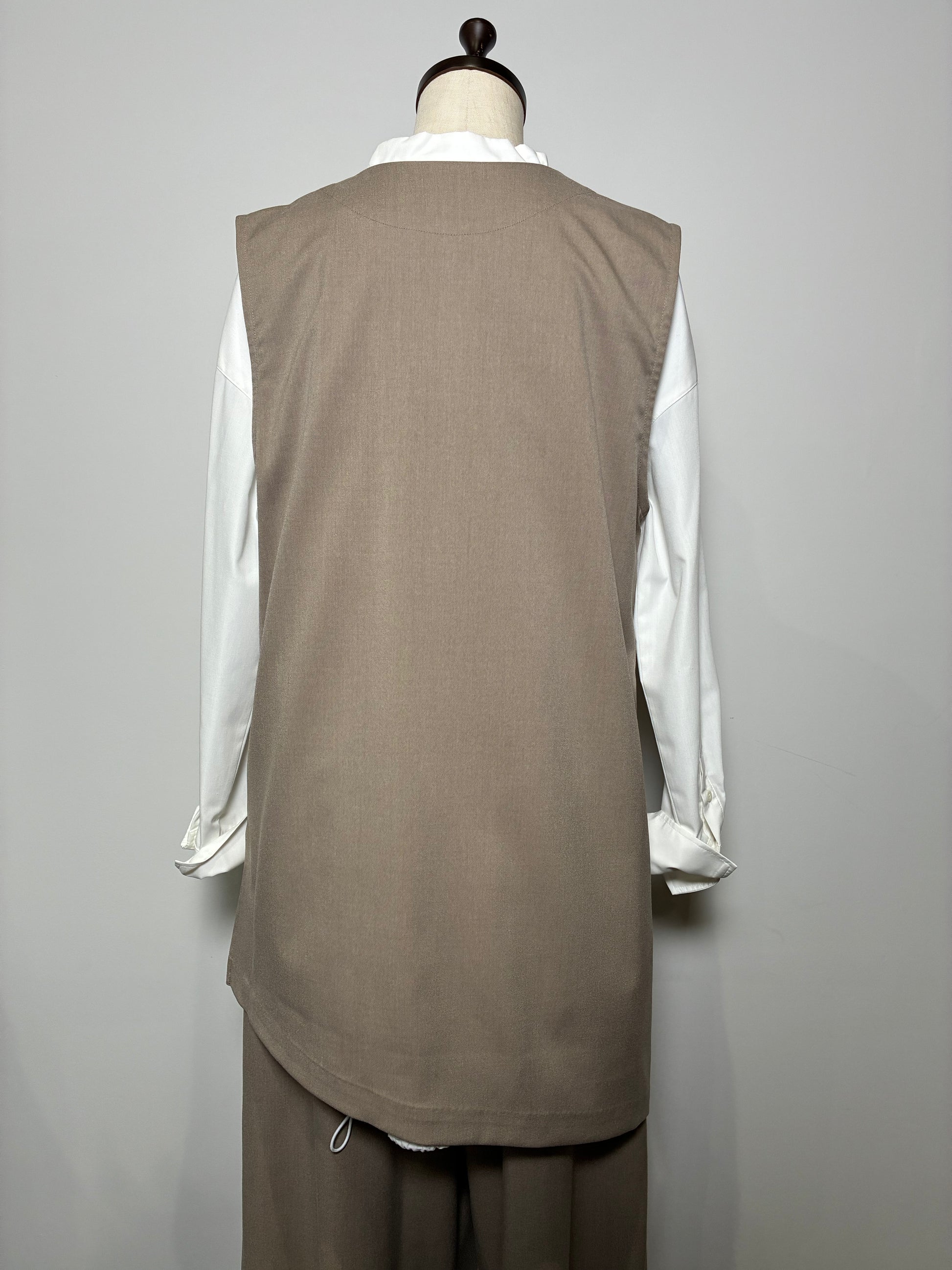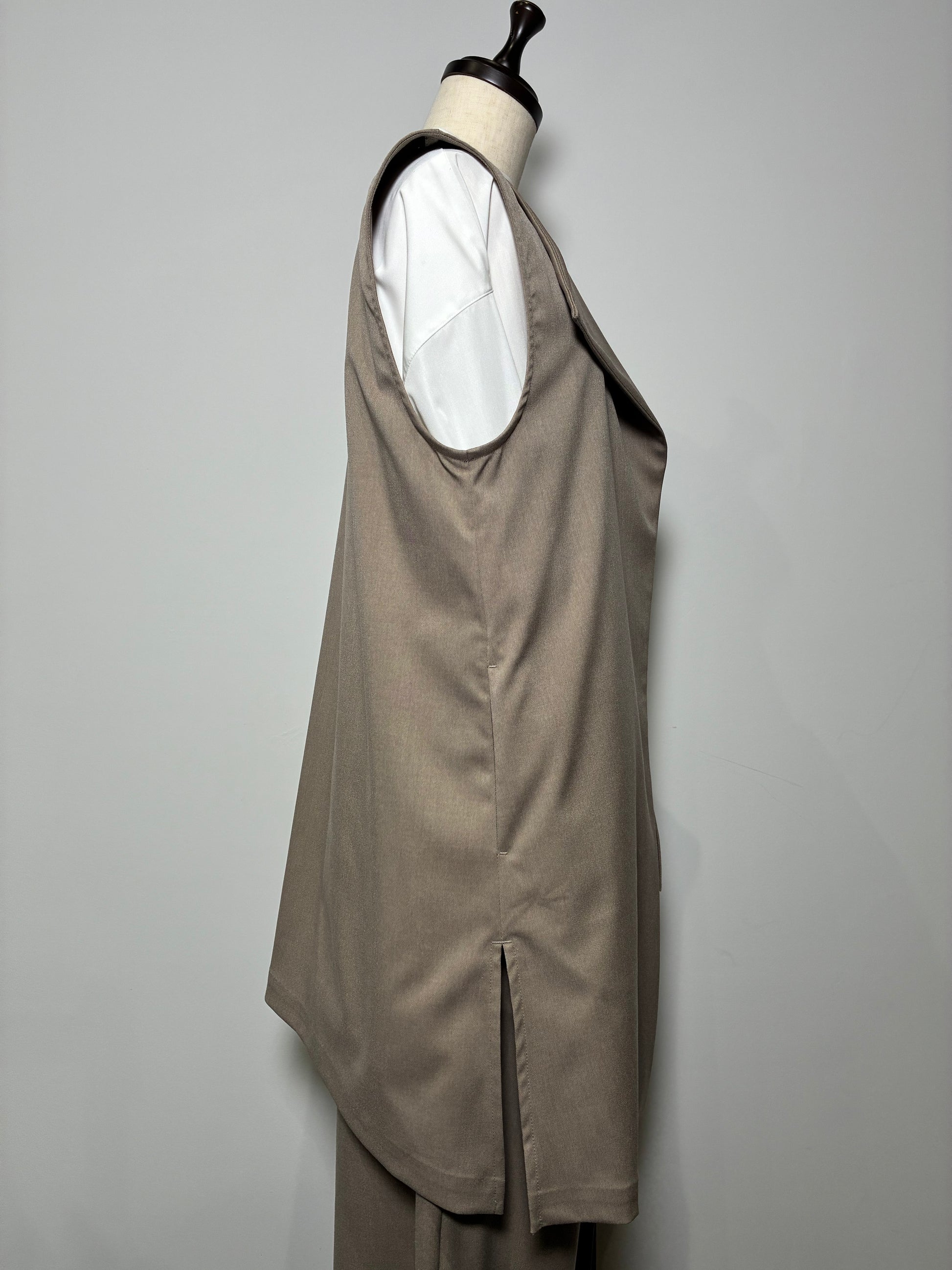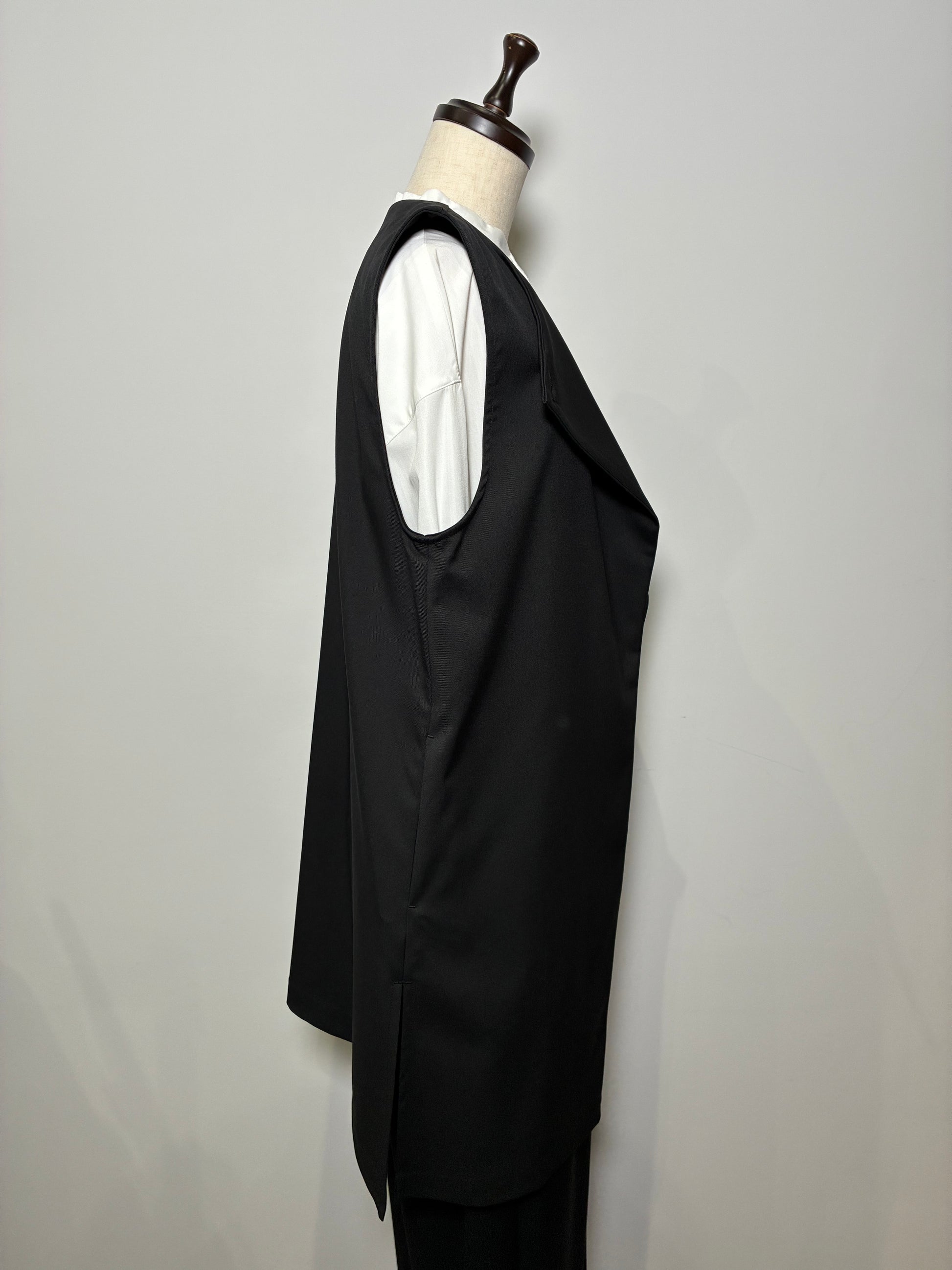 上品さの中に個性が光る、アシンメトリーデザインのジレ。