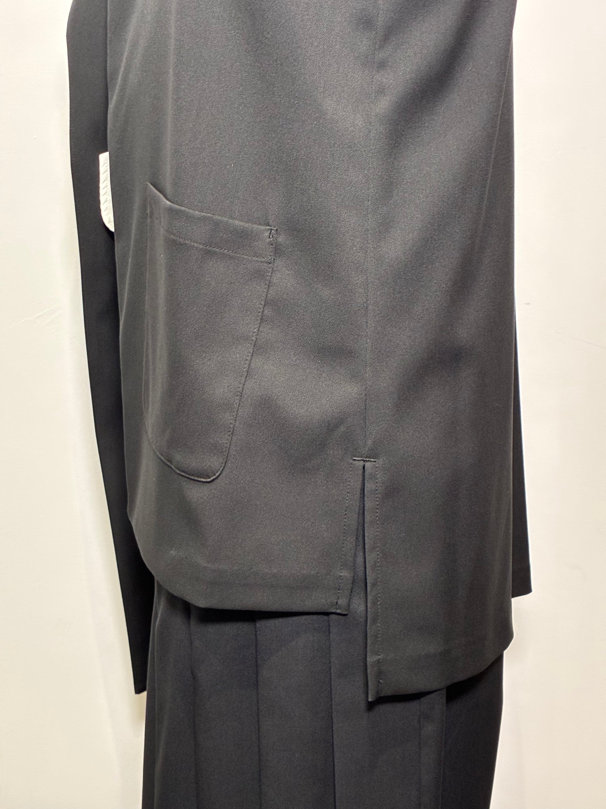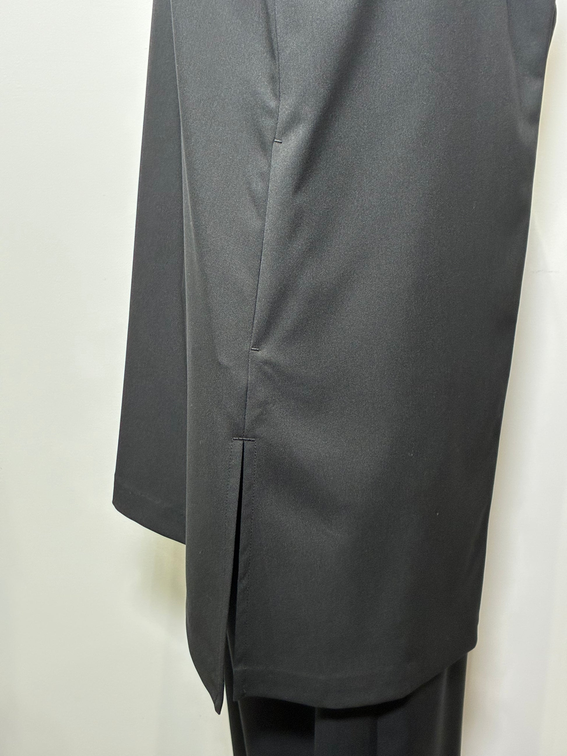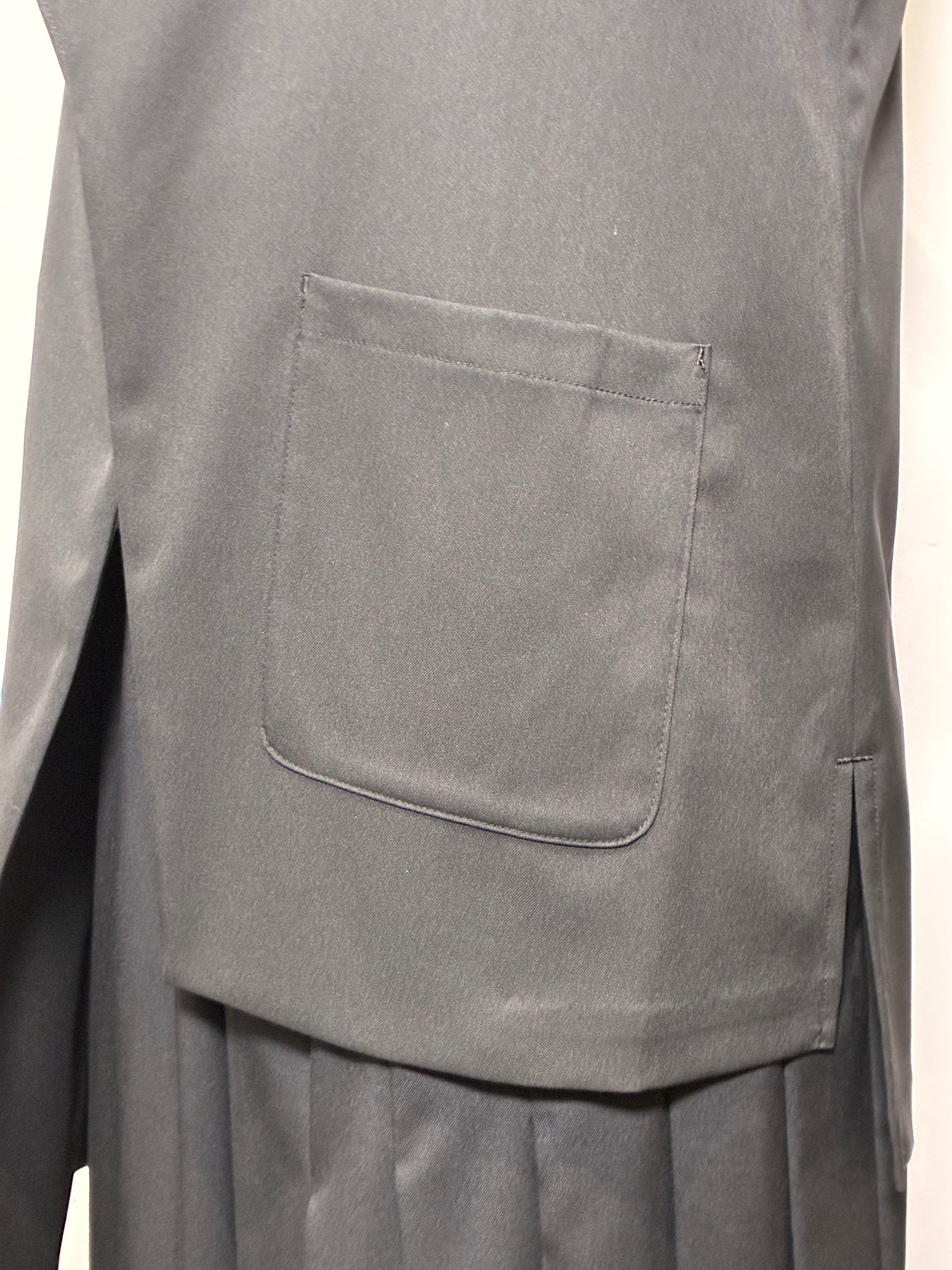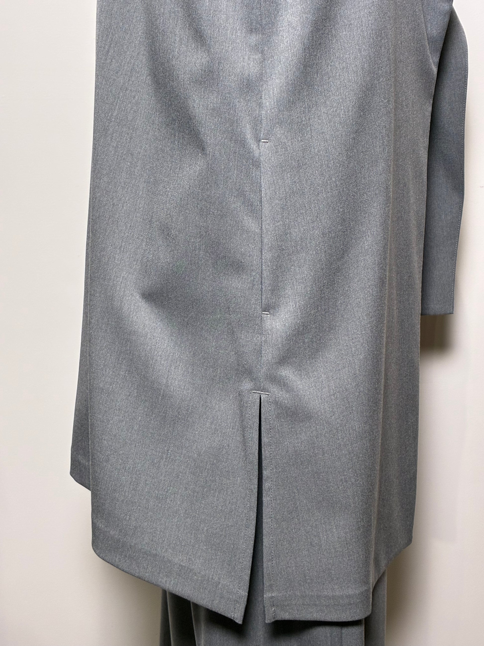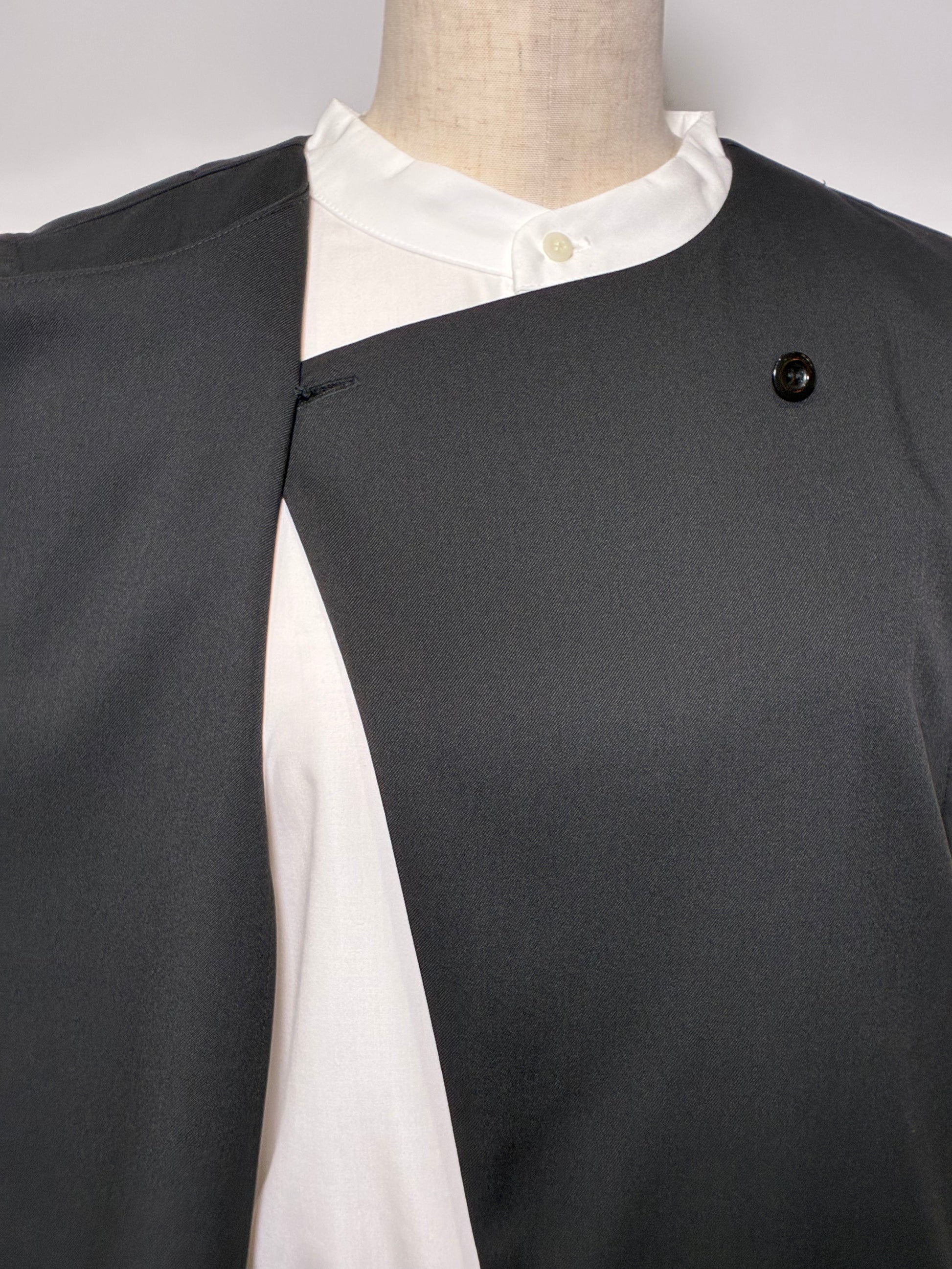 立体的な衿のラインと左右非対称のシルエットが、動くたびに表情を変える一枚。