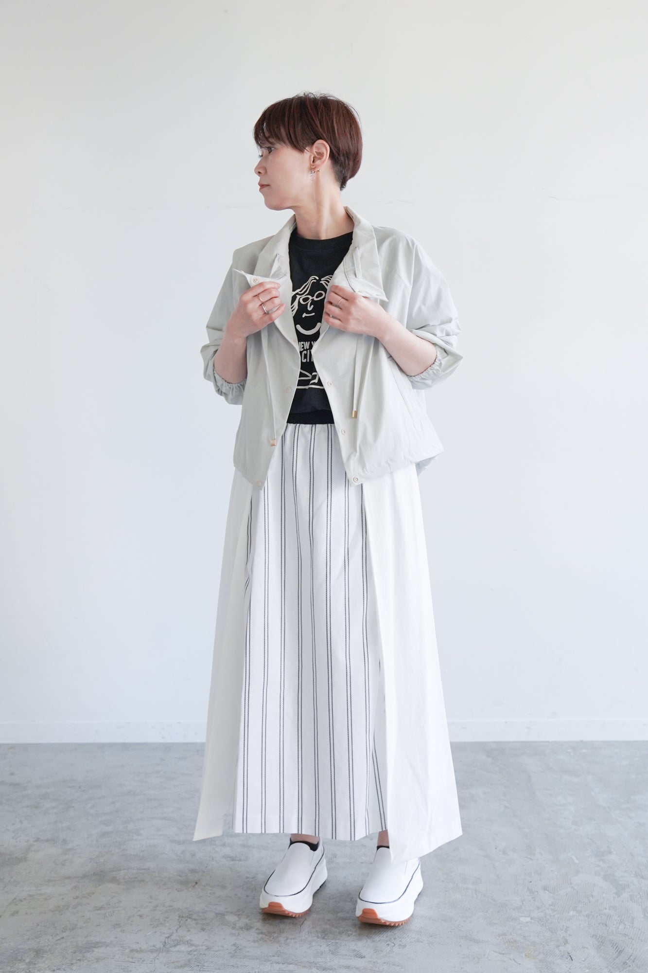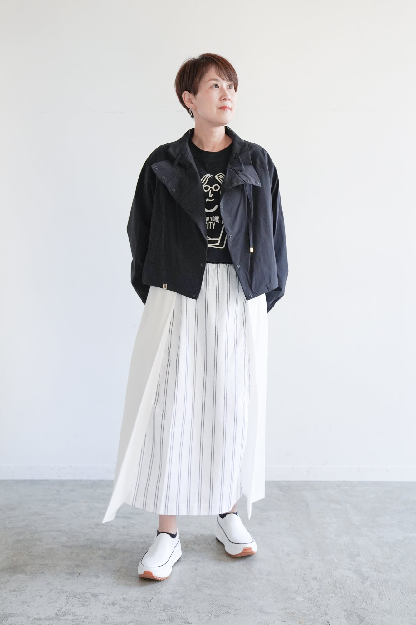 前後差のある丈感とコンパクトなシルエットが、どんなボトムにも好バランスで決まります。