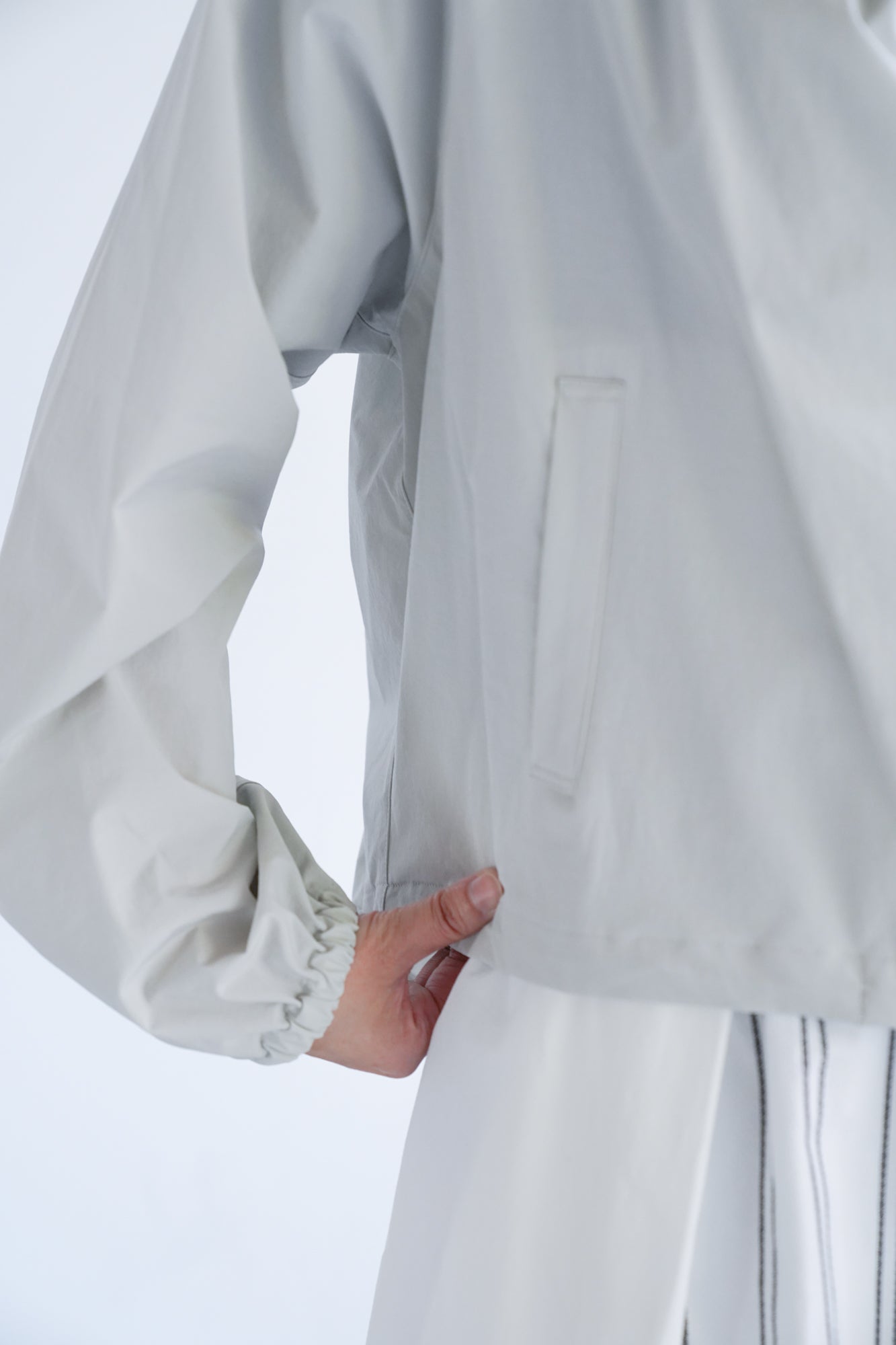 春〜初夏、秋口にも使える季節の変わり目にちょうどいい羽織りです。持ち運びにも便利な軽さ。