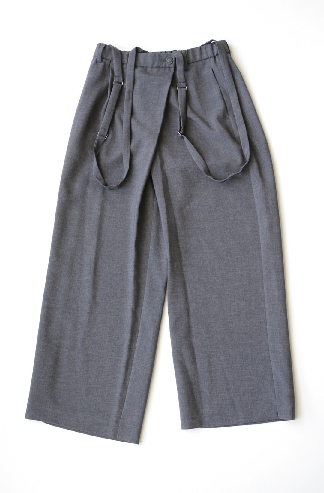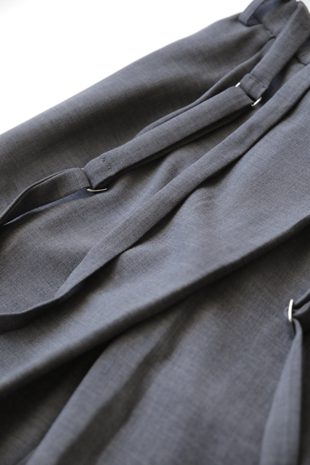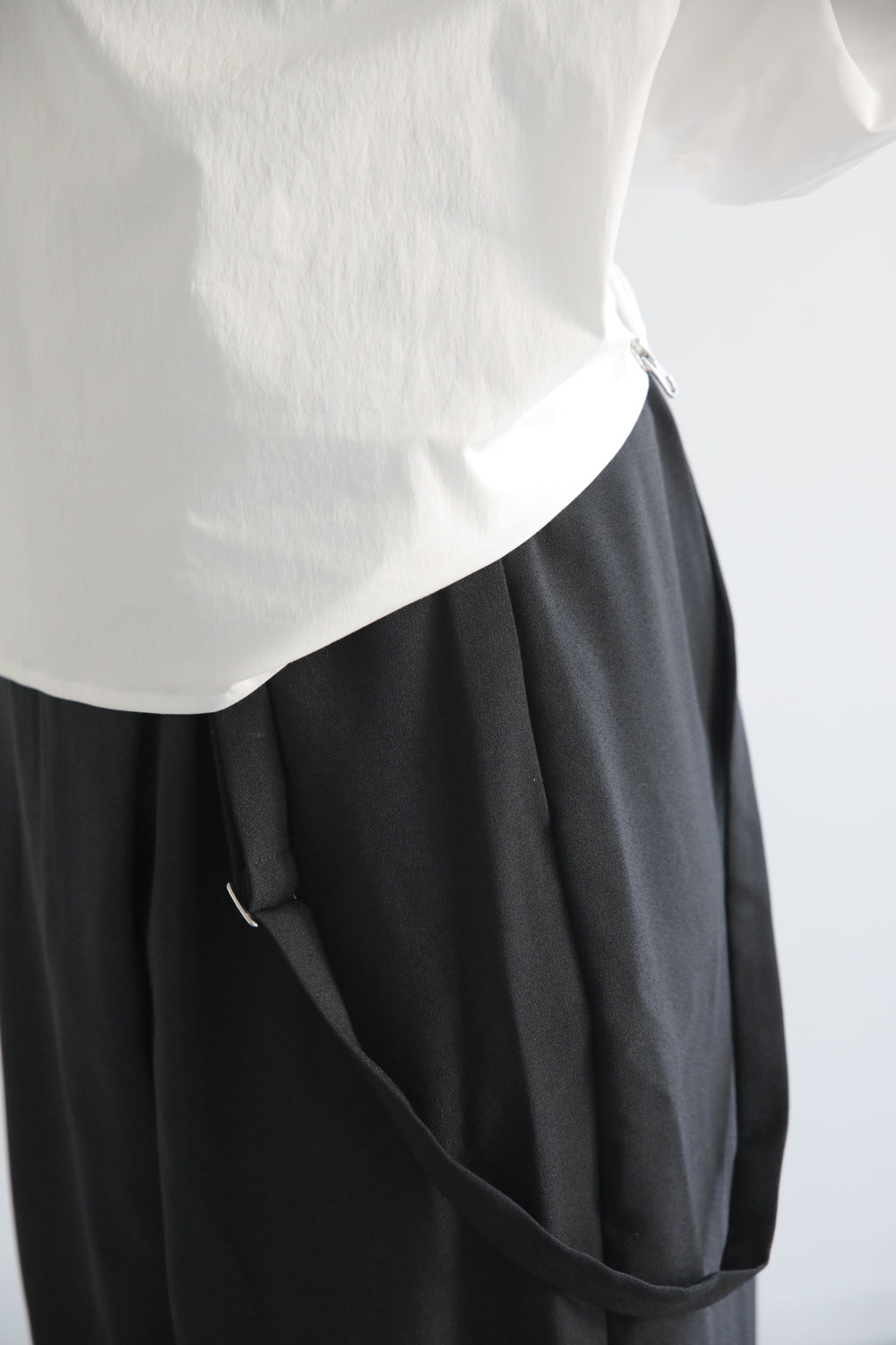 サスペンダー付きラップ風パンツ