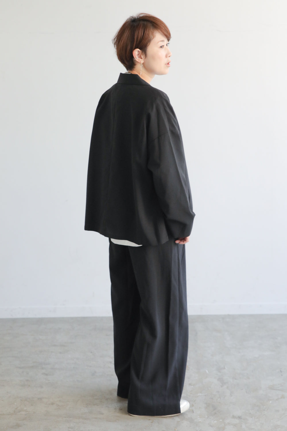軽くてシワになりにくい素材感で、きちんと見えしつつデイリーにストレスフリー。