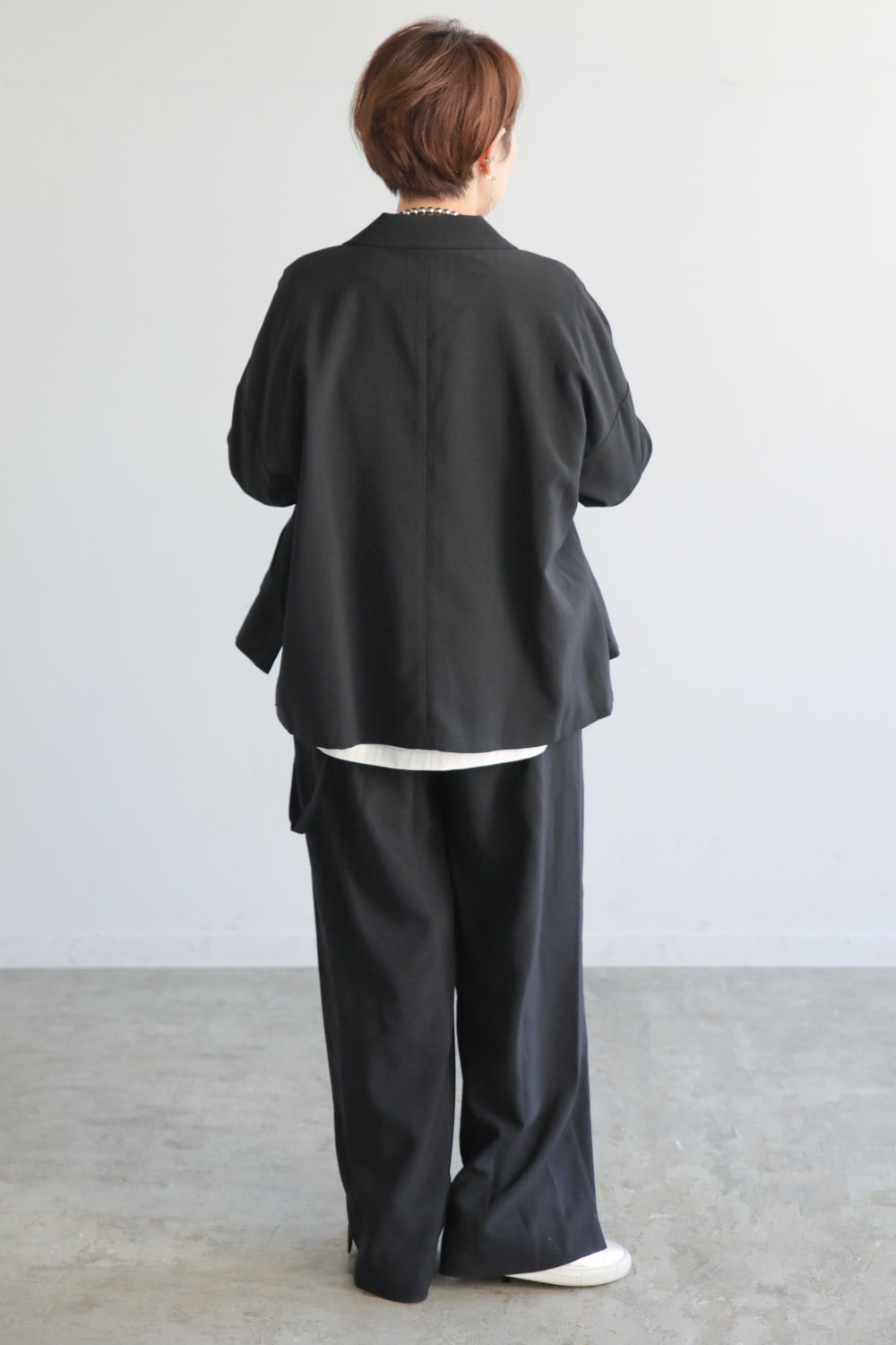 フラットでもヒールでもバランスよく決まるすっきりレッグラインで、通勤からお出かけまで幅広く活躍。同素材のイージーテーラージャケットと合わせれば、即・上品なセットアップスタイルが完成します。