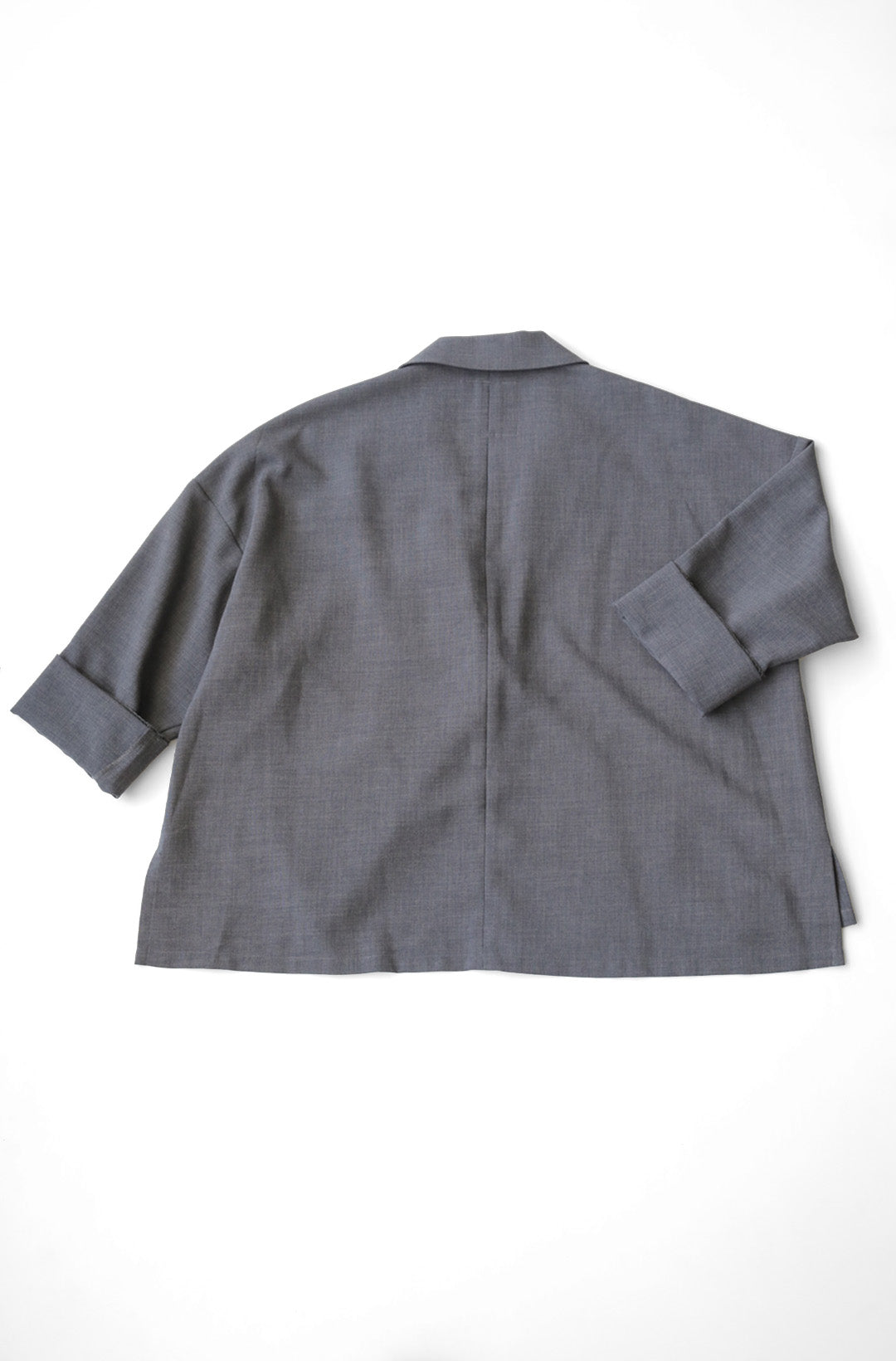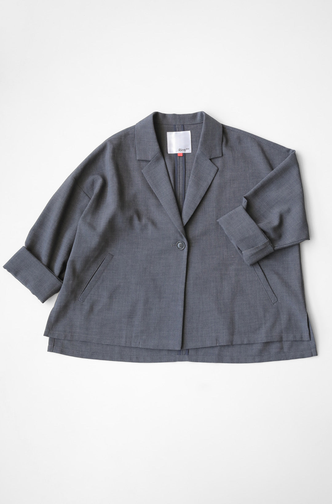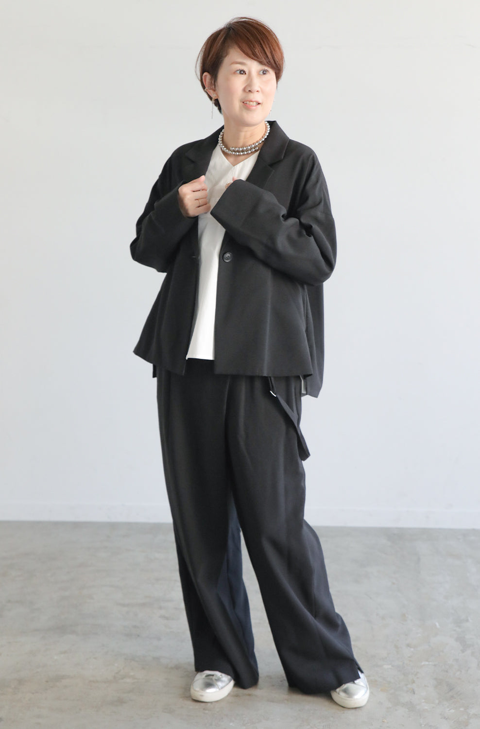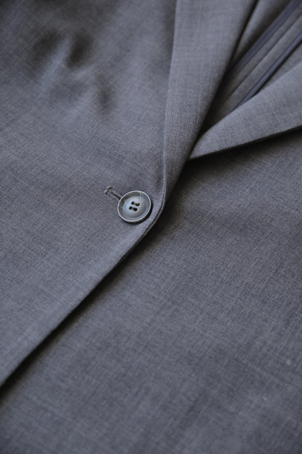 麻のような表情を持つポリエステル素材を採用した、見た目にも清涼感のあるテーラードジャケット。軽さが魅力で、きちんと感はありつつもカーディガン感覚でさらりと羽織れます。