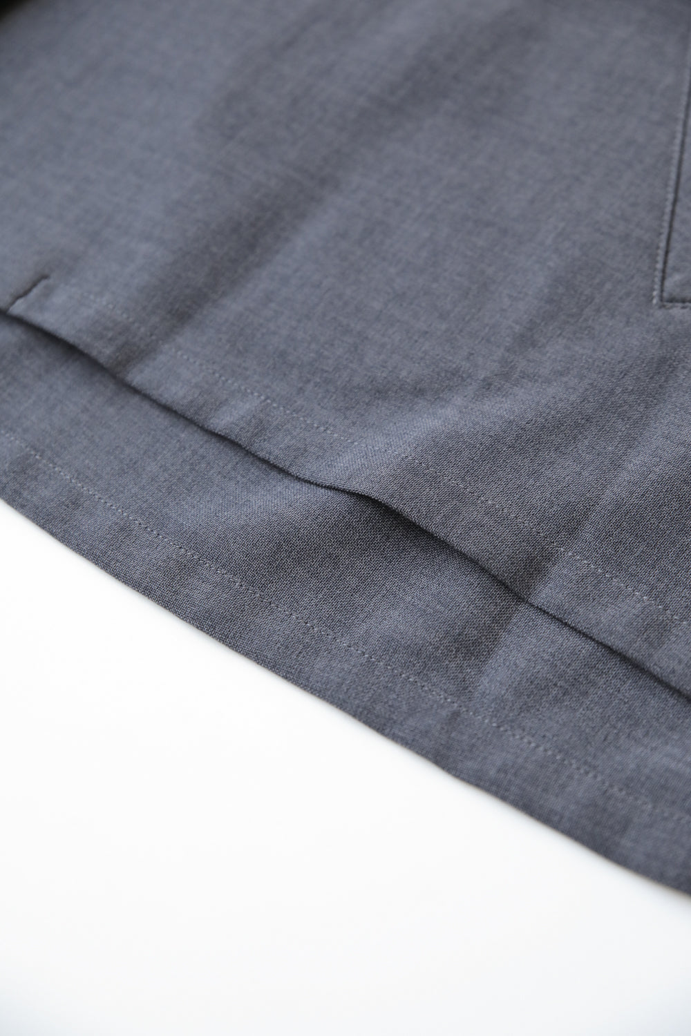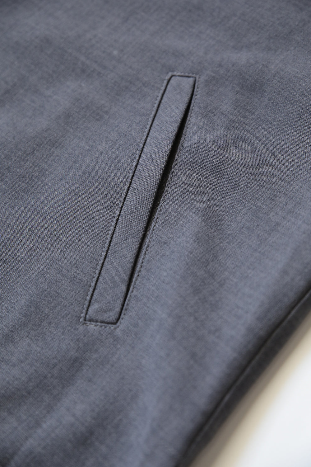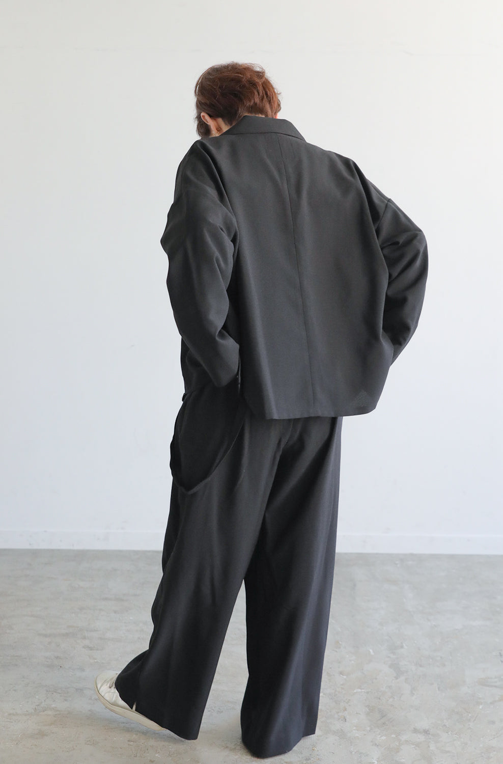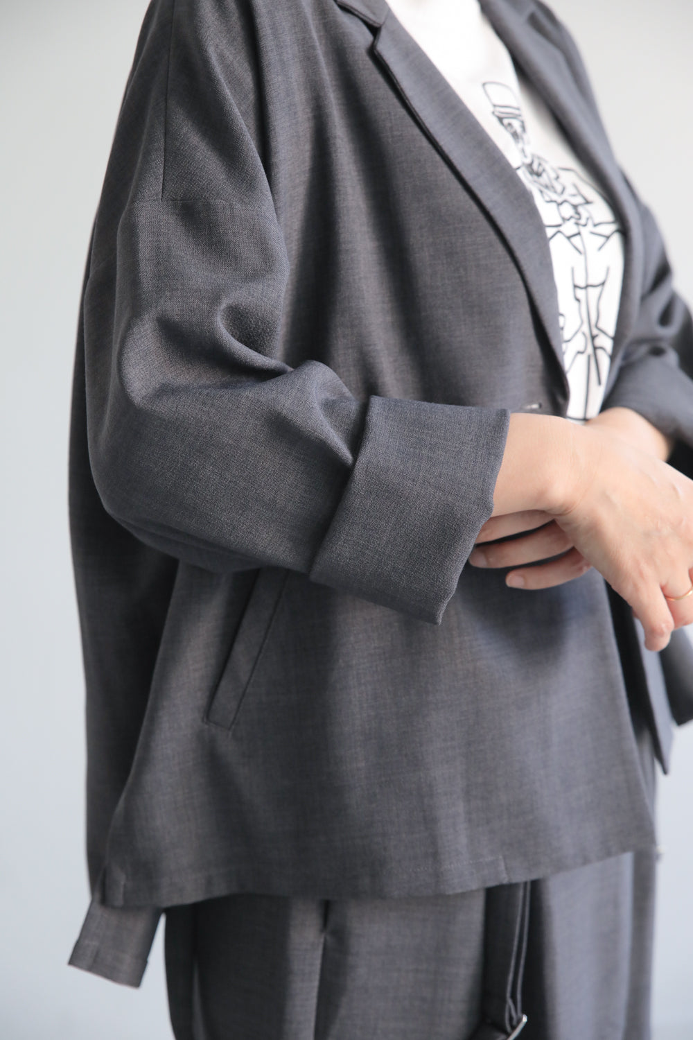 麻のような表情を持つポリエステル素材を採用した、見た目にも清涼感のあるテーラードジャケット。軽さが魅力で、きちんと感はありつつもカーディガン感覚でさらりと羽織れます。